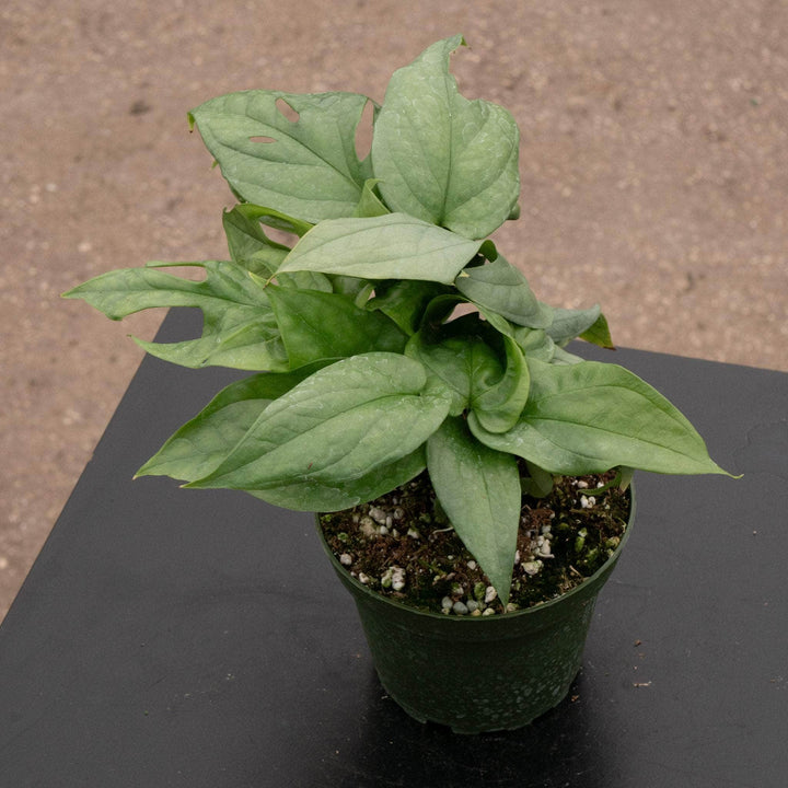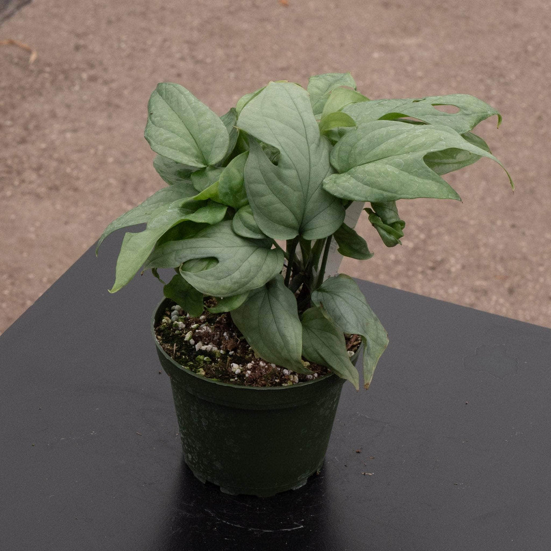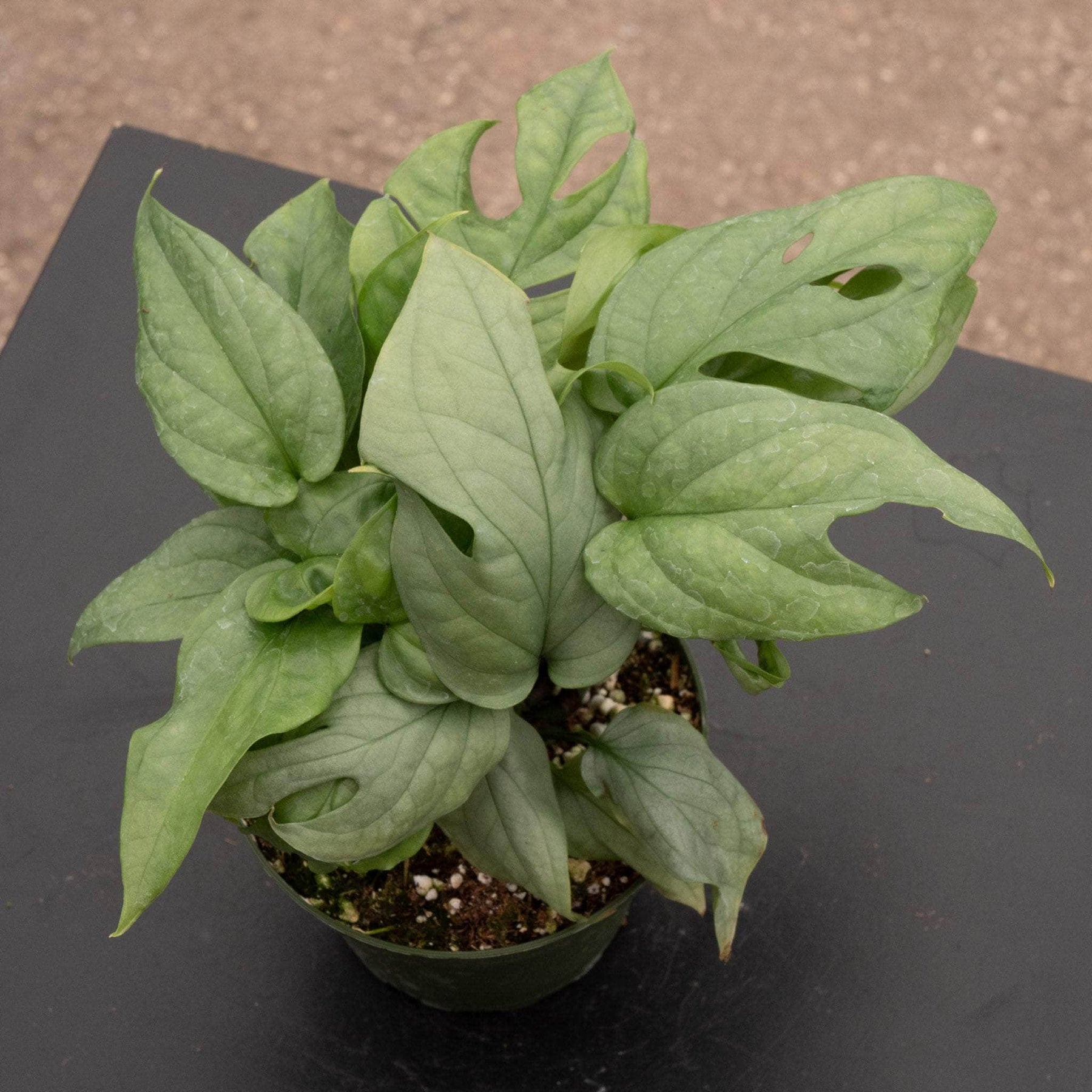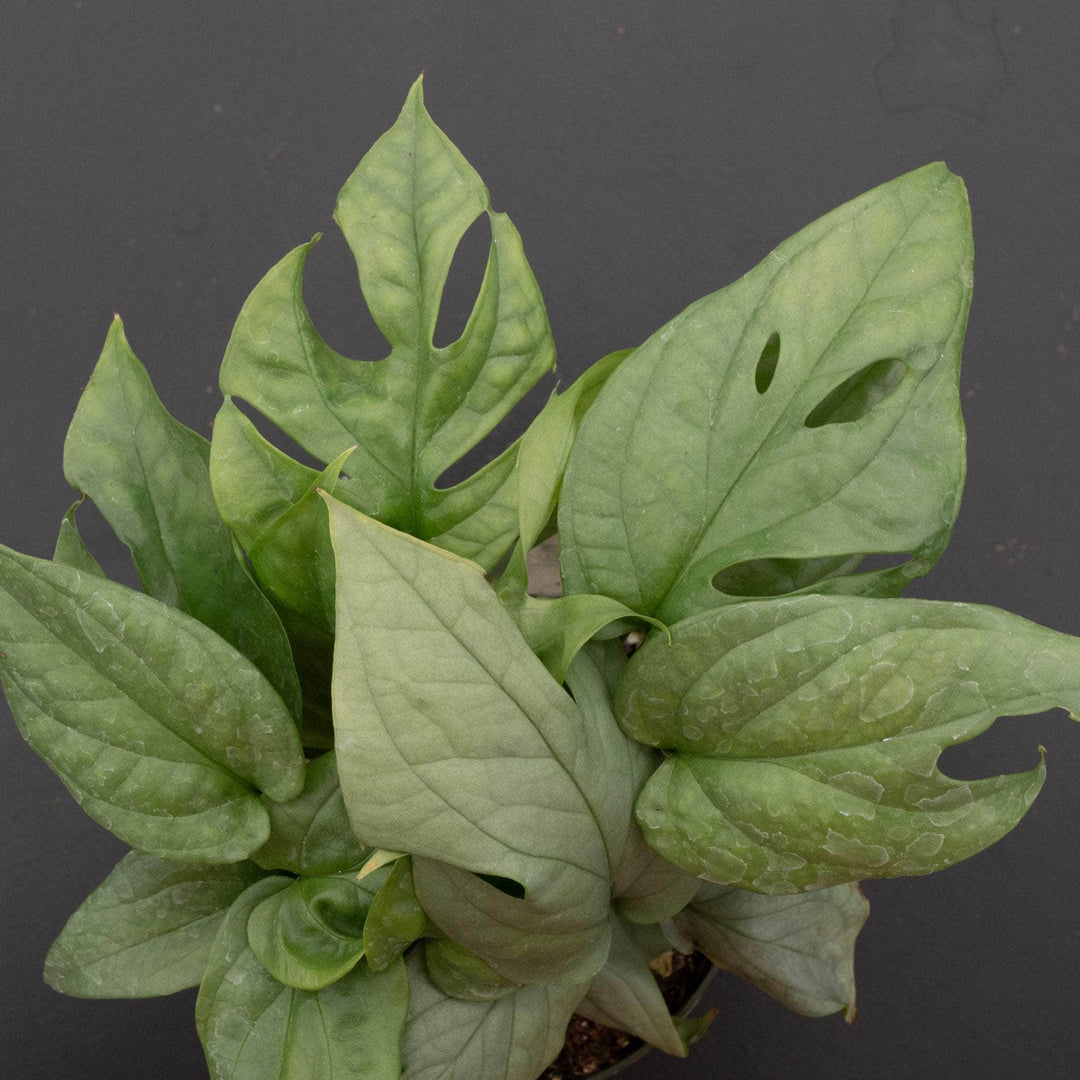 The amazing foliage on Amydrium medium 'Silver' is a glossy silver green that develops several to many round to oval fenestrations near midrib during its juvenile stage, and entire to once or twice perforated once it reaches maturity.