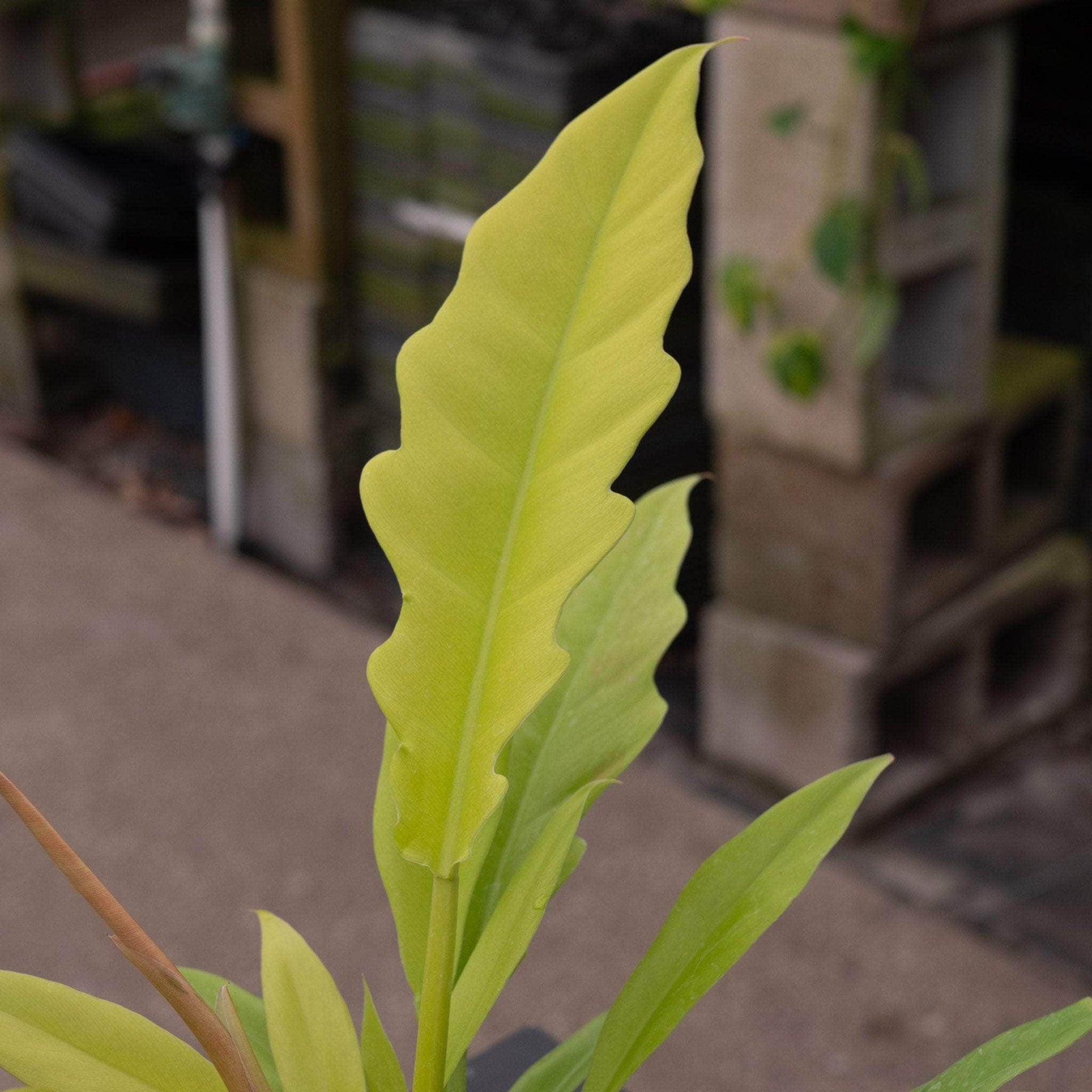 Philodendron 'Golden Crocodile’ is a really cool mutation of the saw toothed philodendron with foliage in exciting and vibrant shades of golden green that develop deeply serrated leaf margins as it matures. Also commonly referred to as 'Golden Saw’ and ‘Neon Ring of Fire'