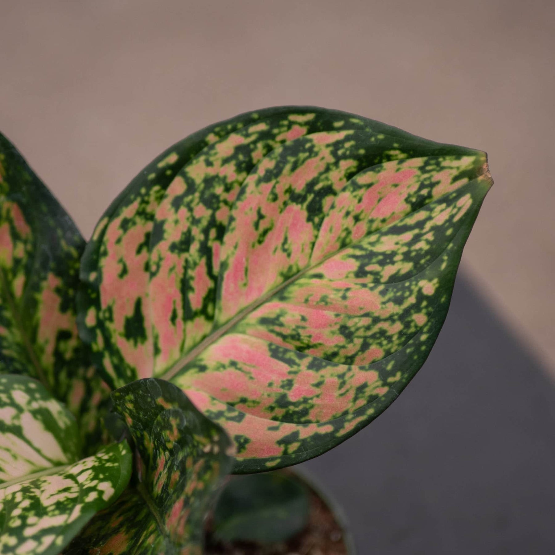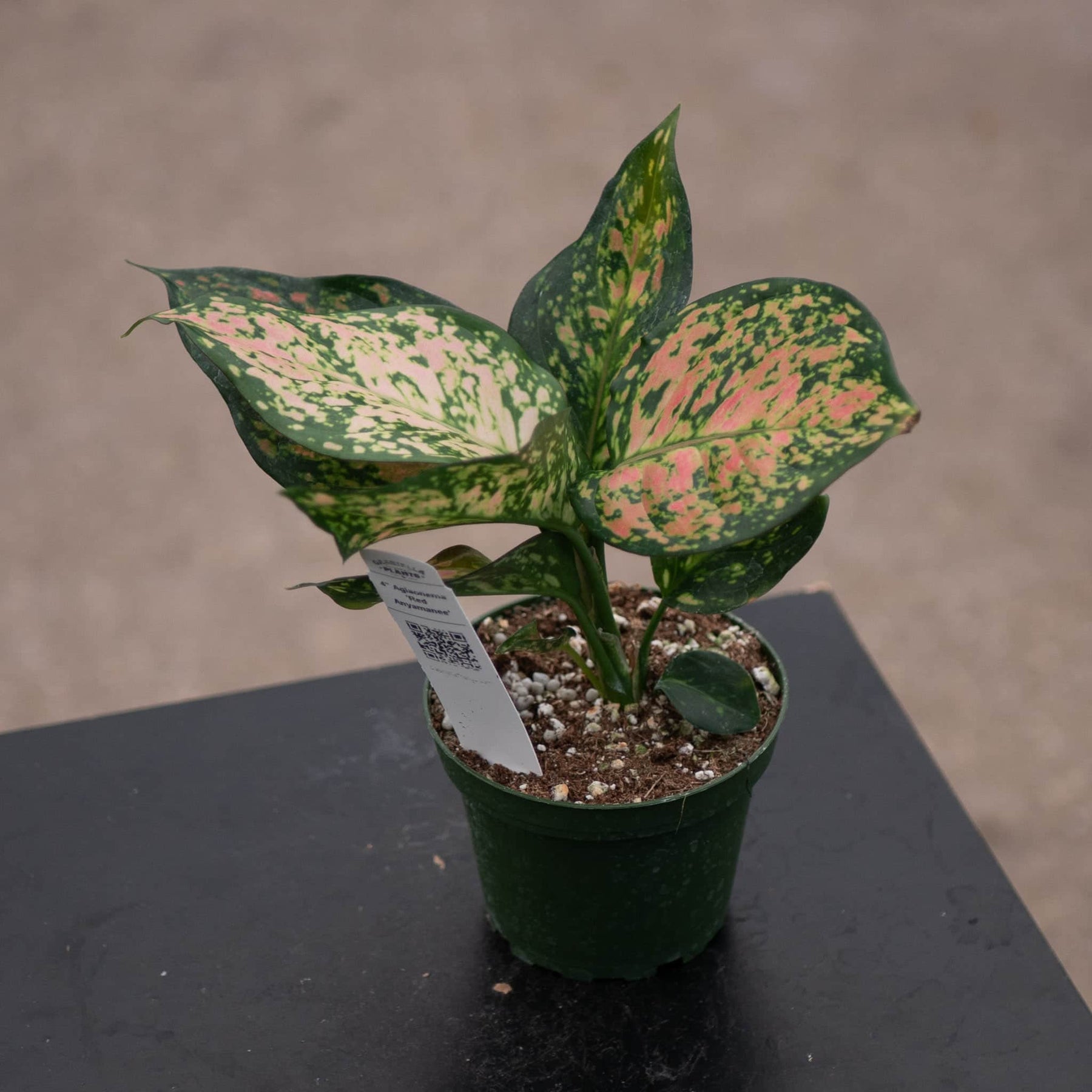 Aglaonema 'Red Anyamanee' has vibrant, pink-red leaves that are heavily spotted or splashed with green. Aglaonema will also grow well in medium to low light conditions, for best color and growth provide with bright indirect light. Allow top 2" of soil to dry between watering, but is a very forgiving plant if you forget to water occasionally - perfect plant for beginners! Keep above 60F.