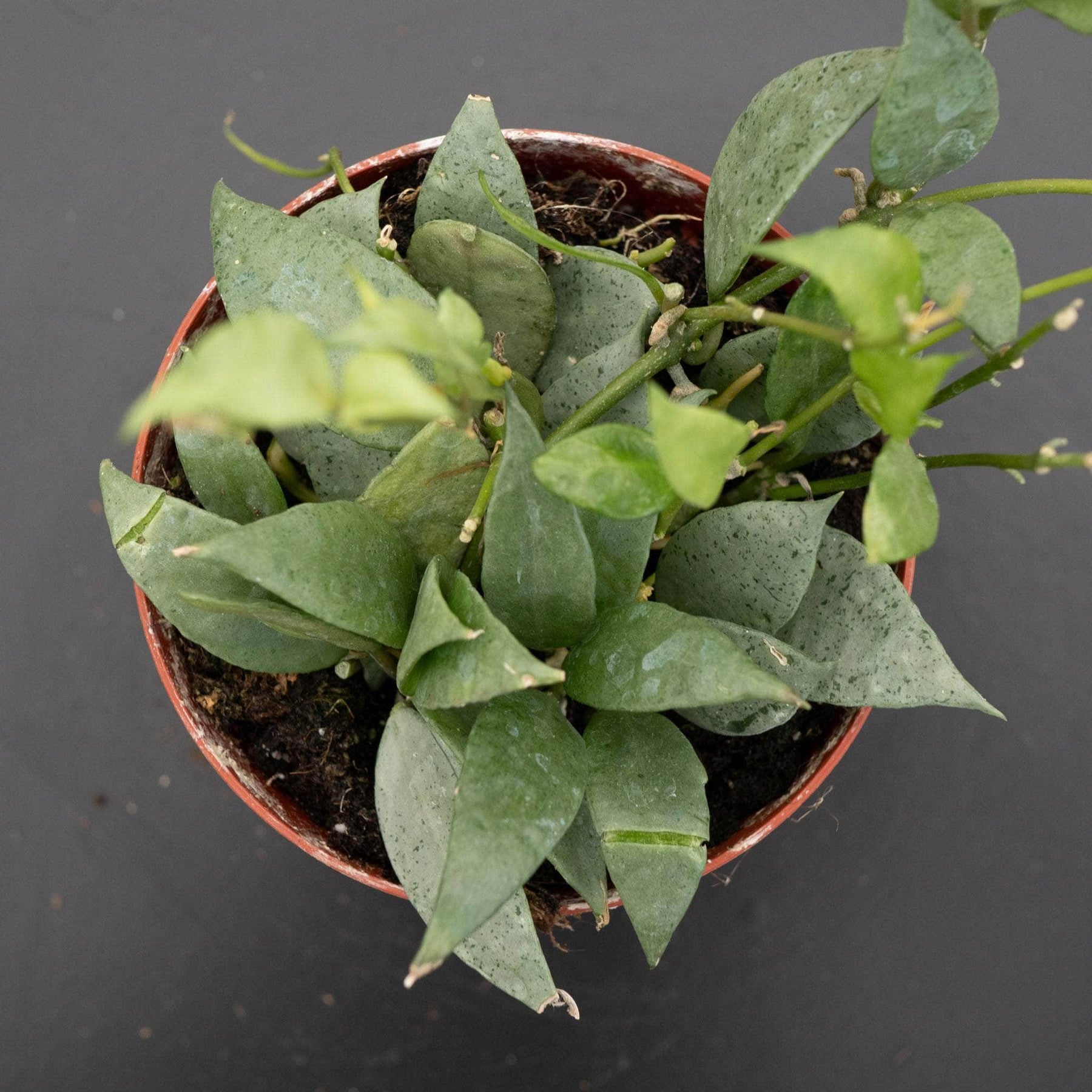 Hoyas are mostly epiphytic creeping, twining or vining plants that have a vast array of different leaf shapes, sizes, textures & colors! If provided with the desired conditions Hoyas can bloom, their flowers varying widely species-to-species with many different colors, sizes & even scents! Many Hoya develop purple spots, streaks or patches on the leaves as a response to light exposure. This is commonly referred to as sun stress, is completely natural and normal - sometimes the entire leaf can turn various shades of purple/red. This is not disease and is actually a sign that the plant is healthy.