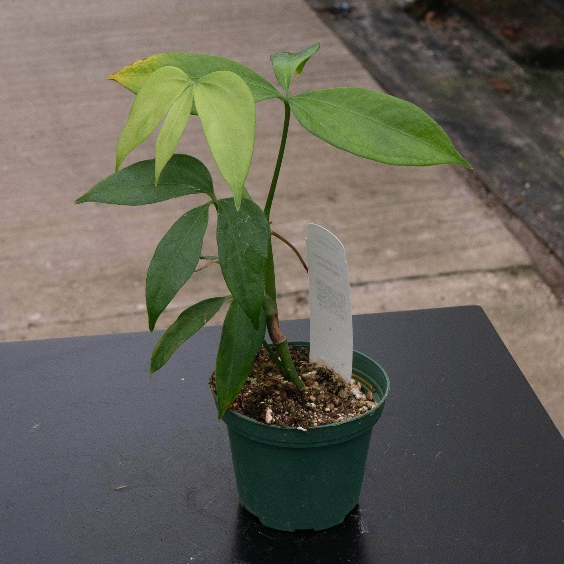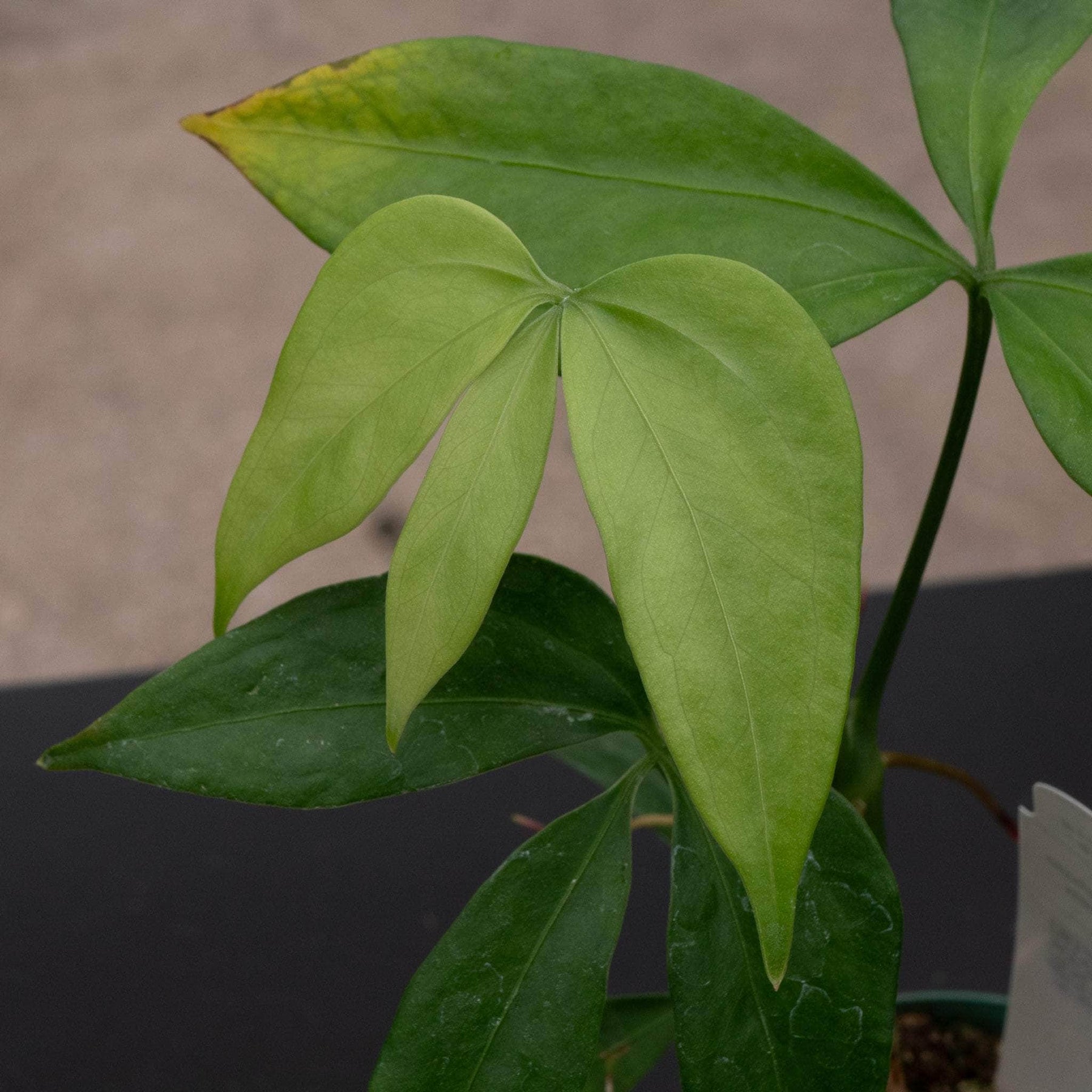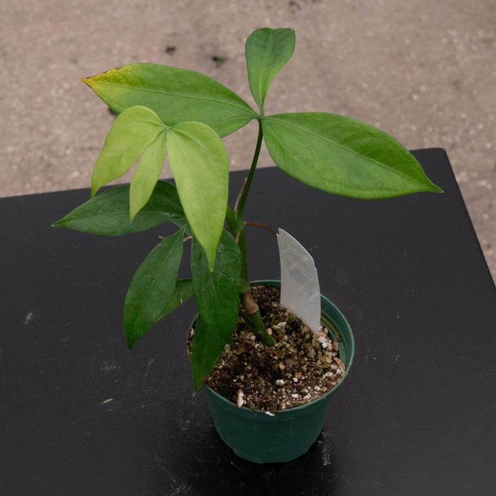 Requires medium to bright indirect light. Water thoroughly when the top 1"-2" of soil is dry, make sure you discard any excess water left in saucer. Anthurium species are known to be highly variable and not every leaf of every specimen will always appear the same.