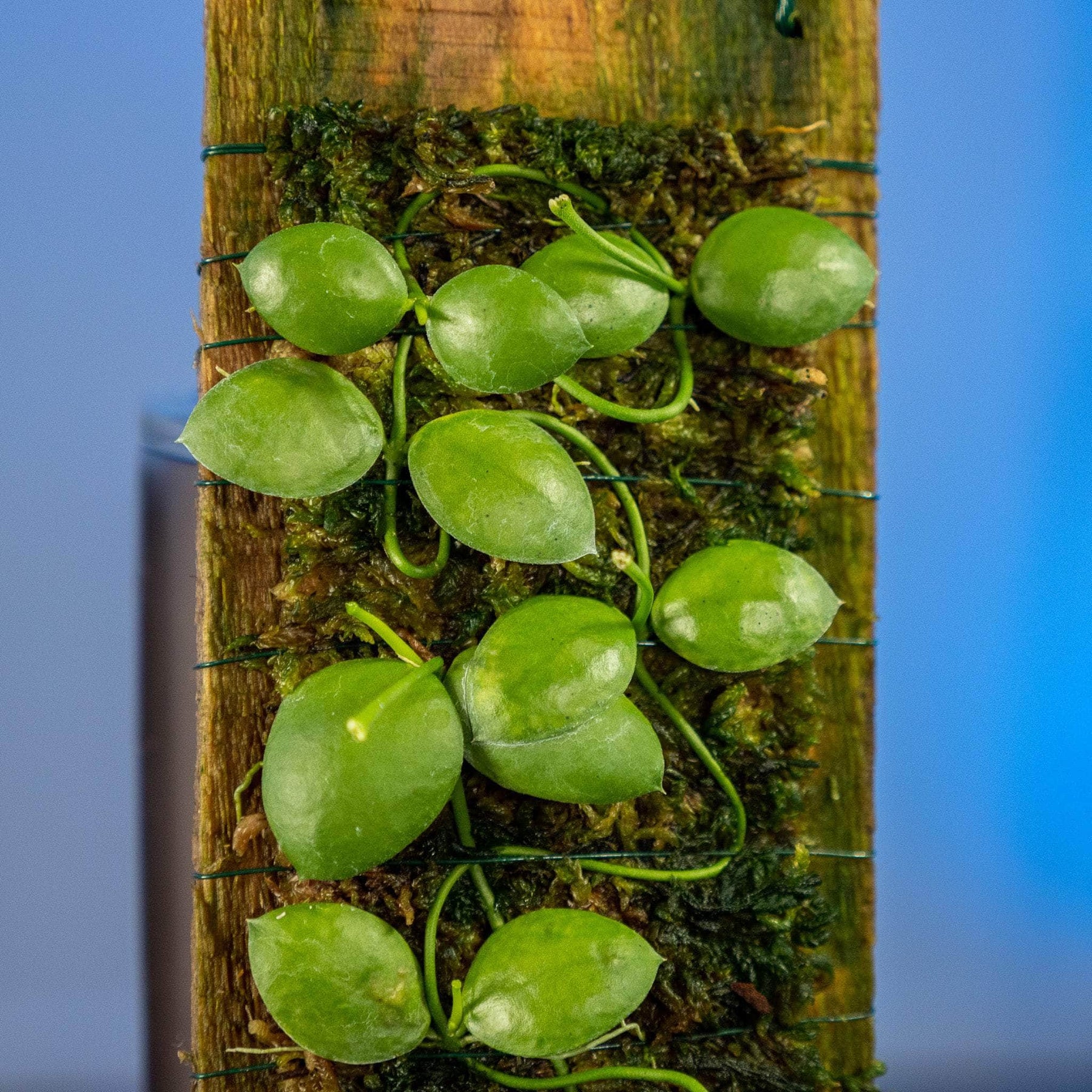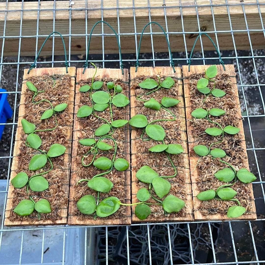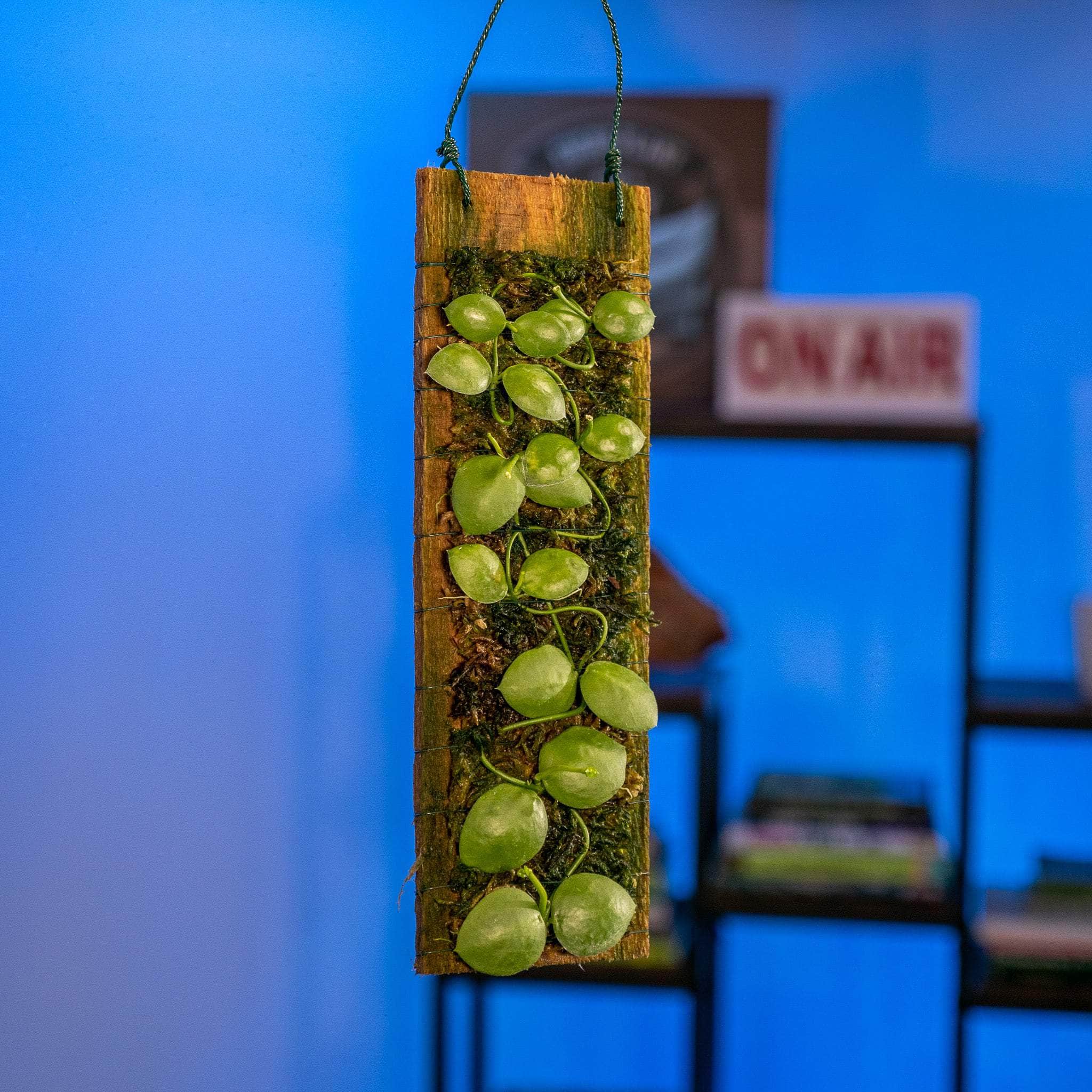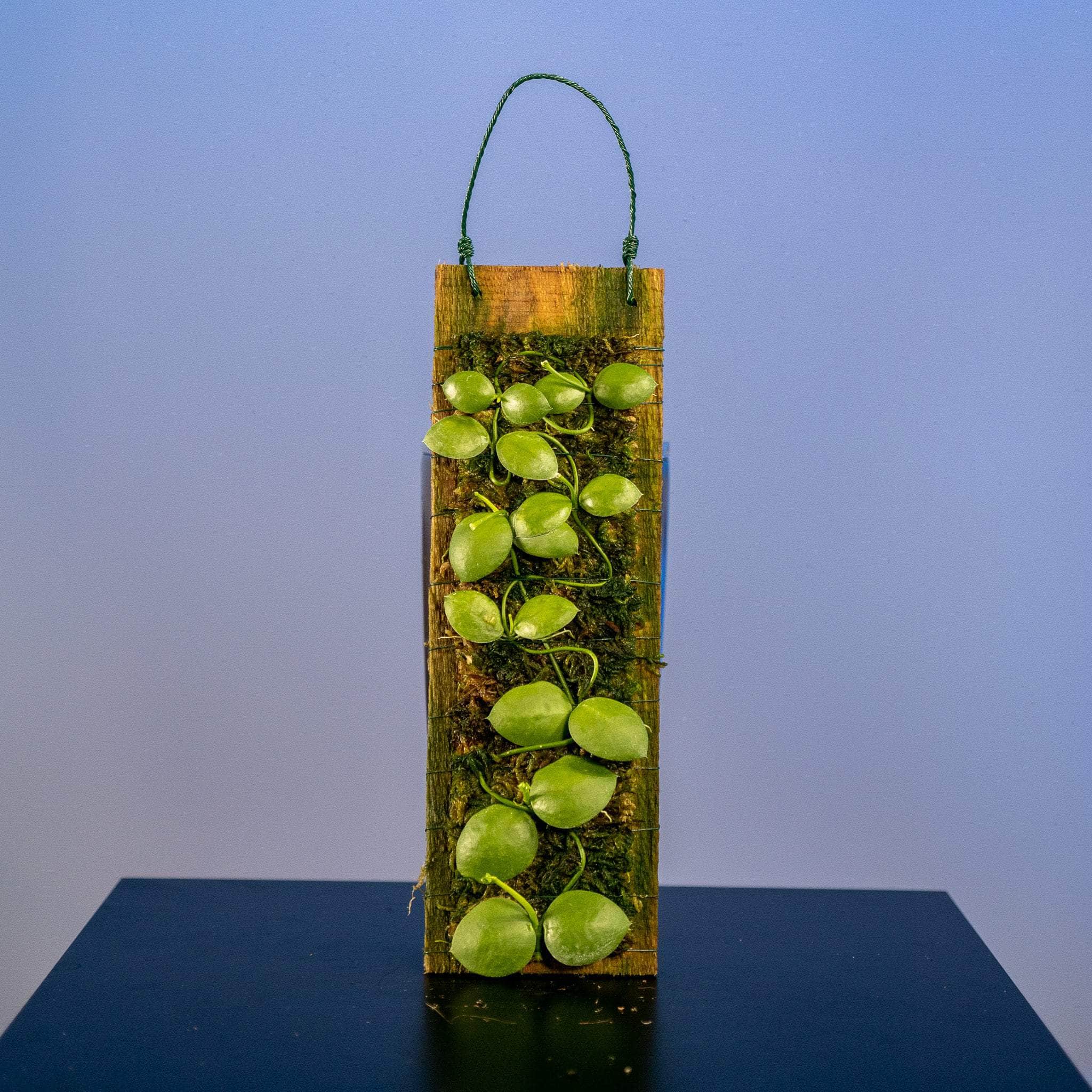 These Dischidia imbricata are surrounded with moss and are already mounted to a plaque of wood with a piece of wire for easy hanging!