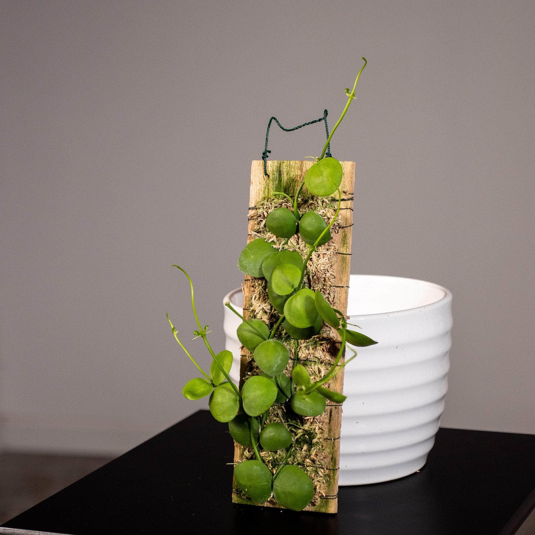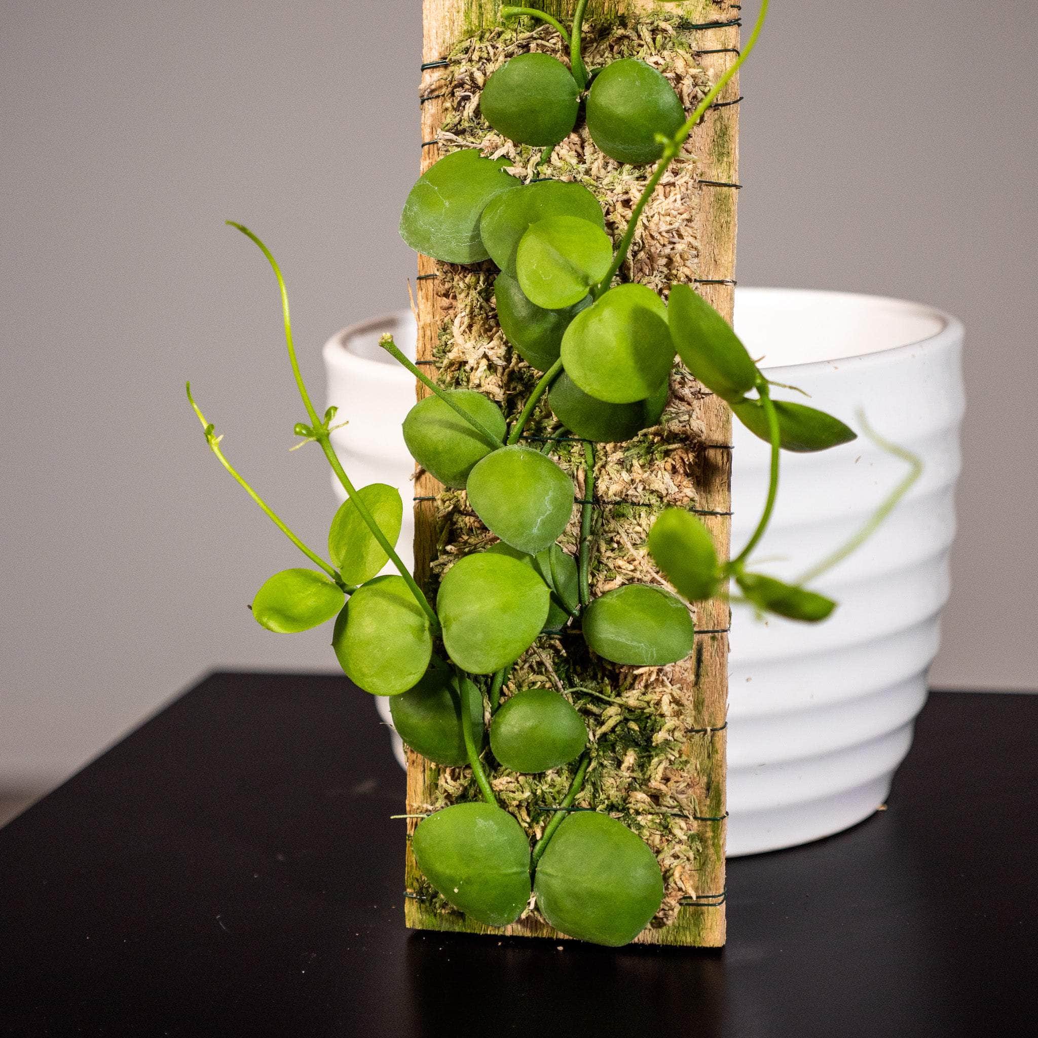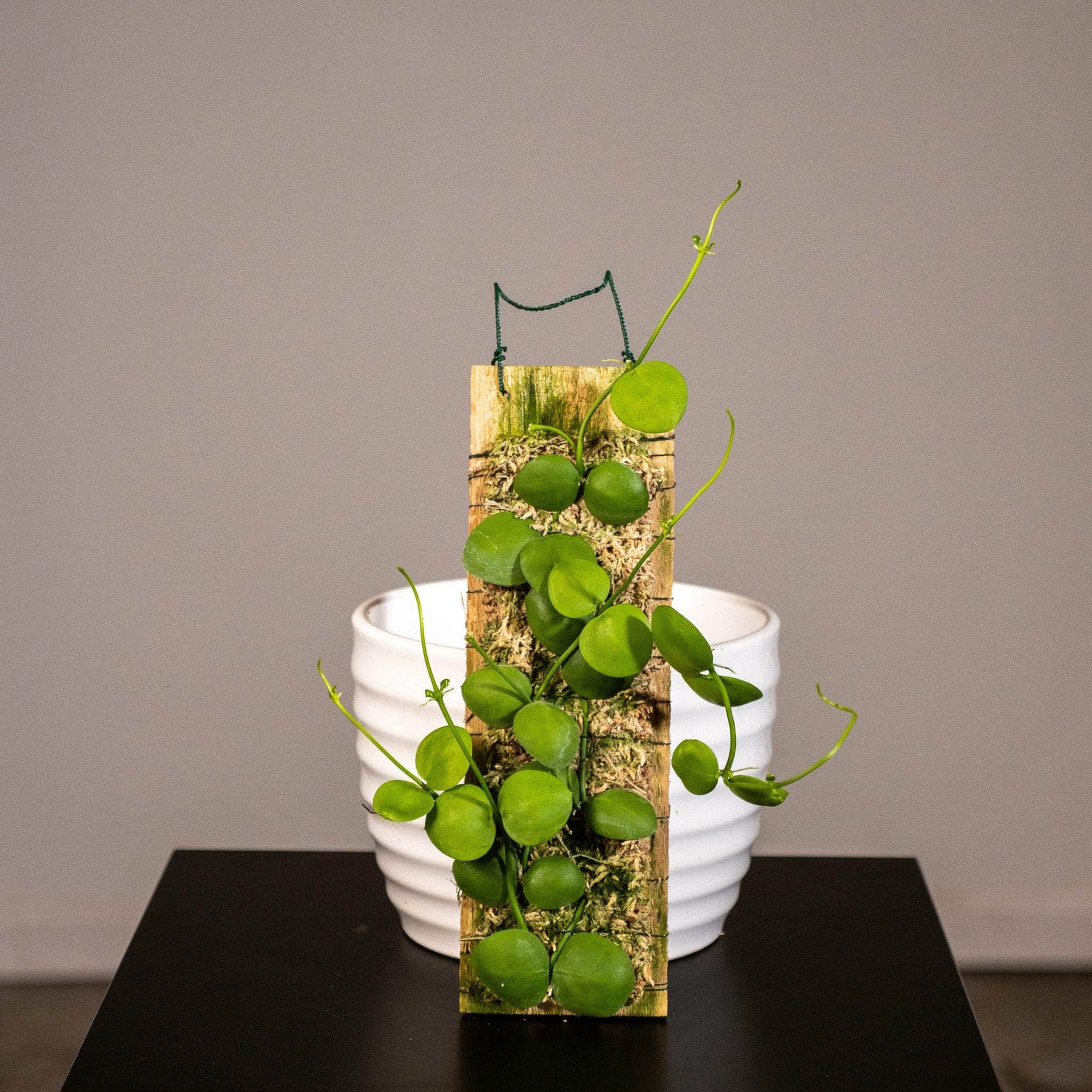 These Dischidia imbricata are surrounded with moss and are already mounted to a plaque of wood with a piece of wire for easy hanging!