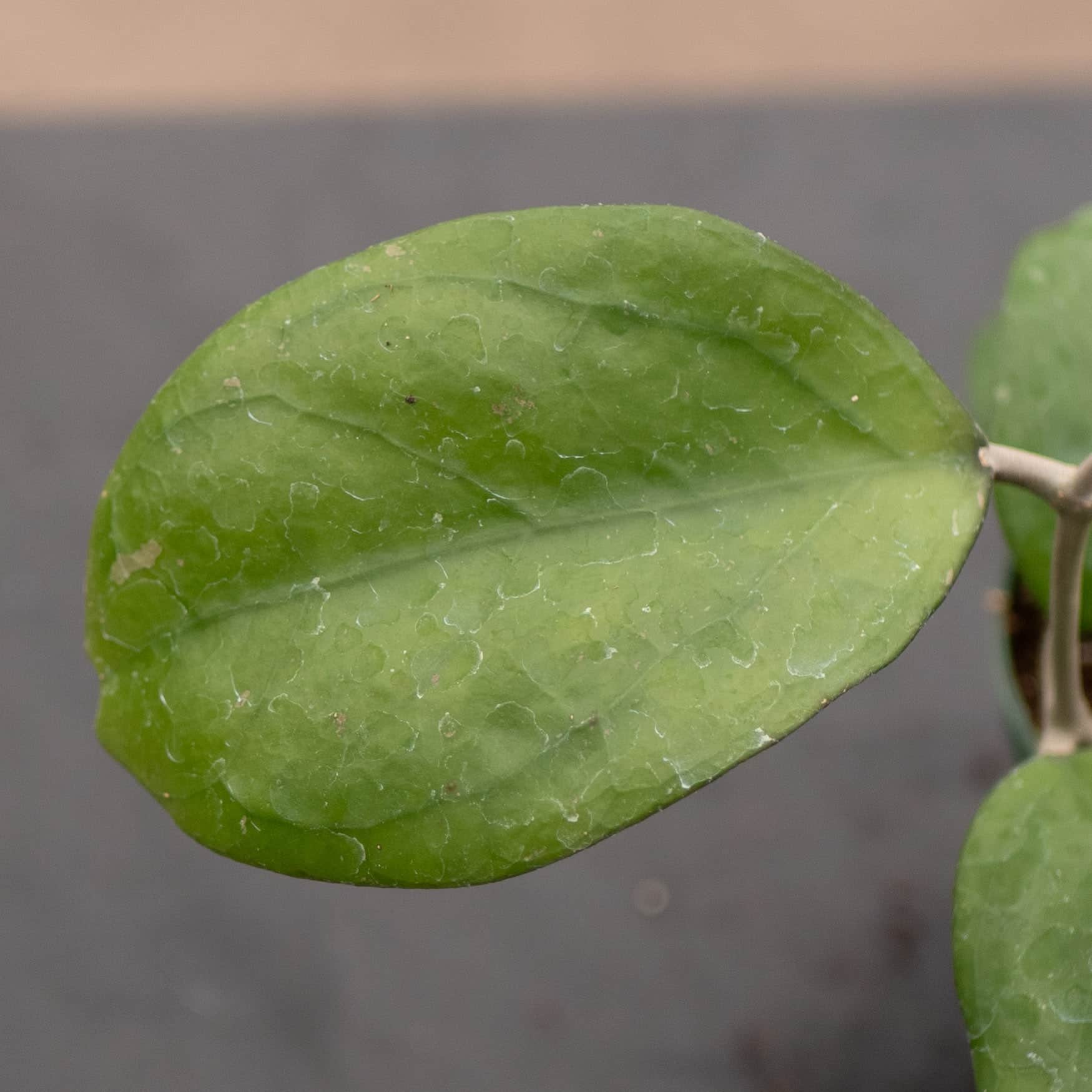 Hoyas are mostly epiphytic creeping, twining or vining plants that have a vast array of different leaf shapes, sizes, textures & colors! If provided with the desired conditions Hoyas can bloom, their flowers varying widely species-to-species with many different colors, sizes & even scents! Many Hoya develop purple spots, streaks or patches on the leaves as a response to light exposure. This is commonly referred to as sun stress, it is completely natural and normal - sometimes the entire leaf can turn various shades of purple/red. This is not disease and is actually a sign that the plant is healthy. Hoya sun stress is generally reversible, the pink, red, or purple swaths/freckles/spots on leaves from bright light is different from sunburn, which causes permanent crispy, white/brown patches. With less light, sun stressed leaves often revert to green, but damaged, burnt spots will not heal - however, the plant can grow new, healthy foliage if conditions are improved gradually.