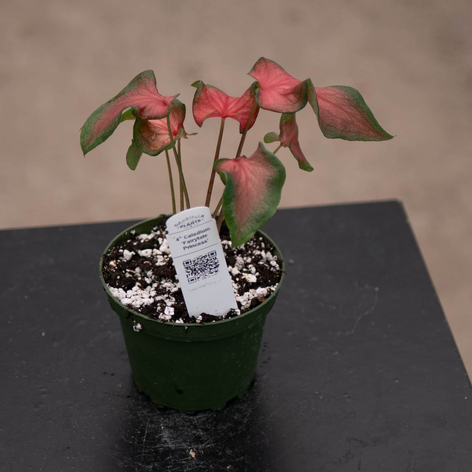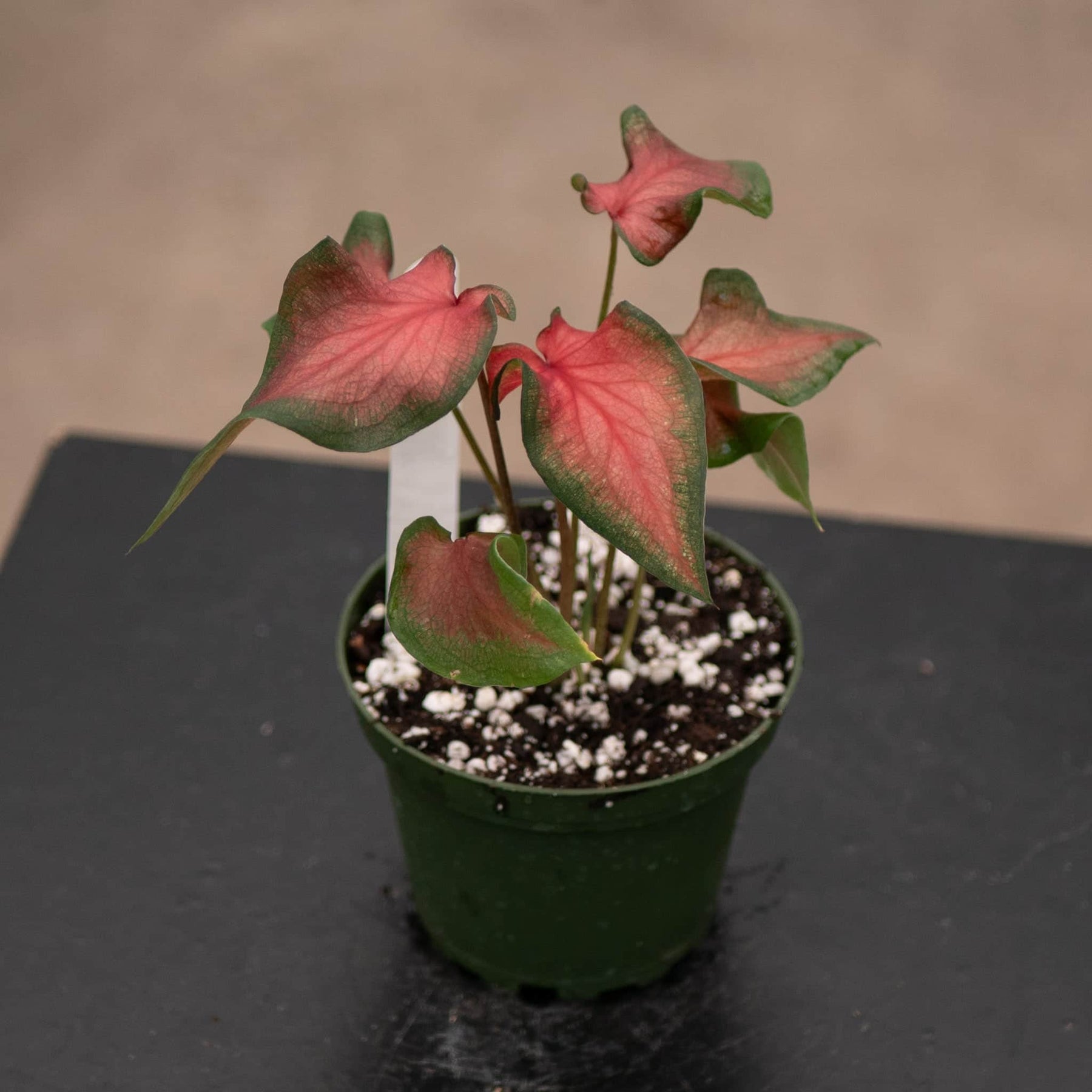 Caladium 'Fairytale Princess' is a vibrant red, lance-leaved cultivar that is tolerant of sunburn and can perform very well in both sunny and shady landscapes!