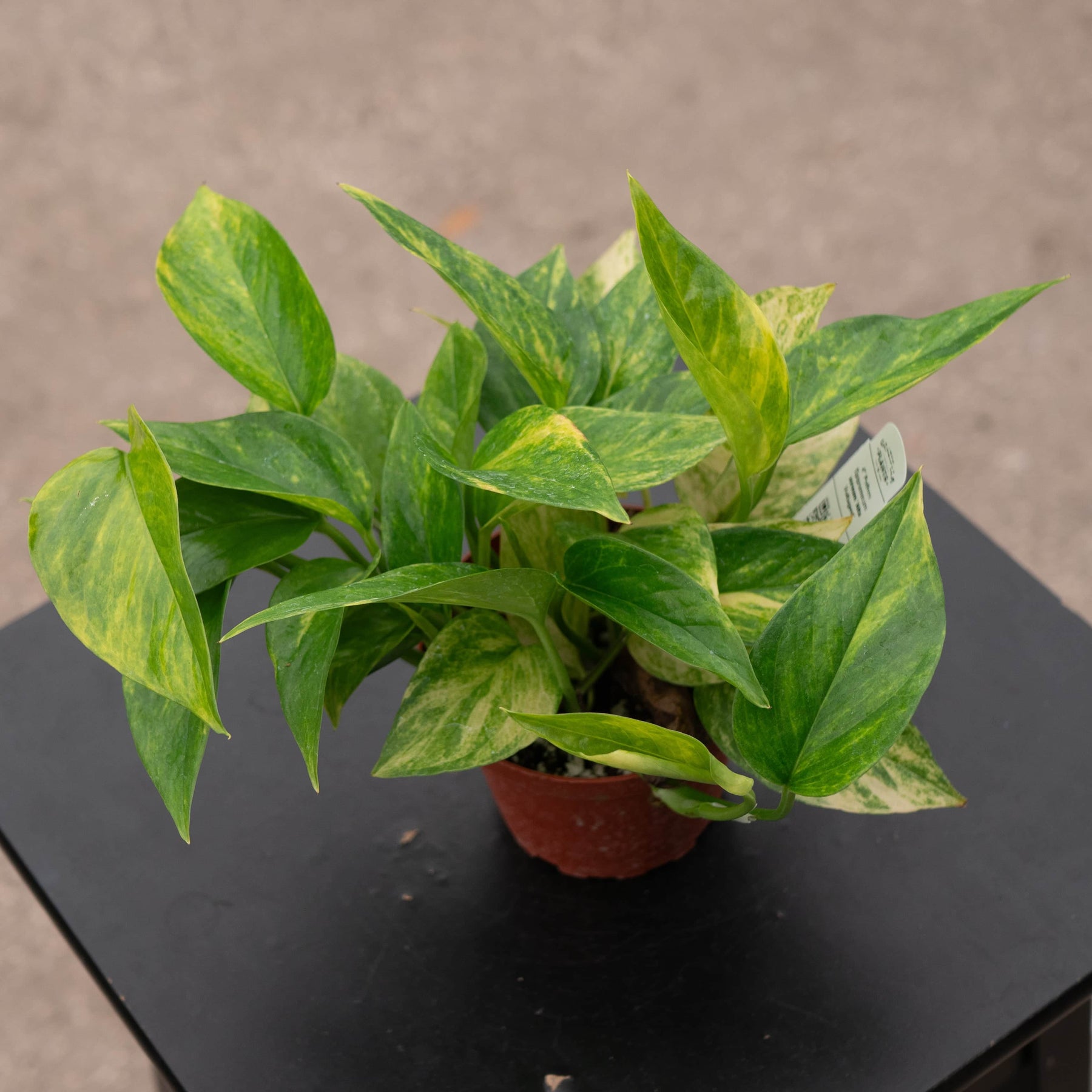 Introducing Pothos Epipremnum aureum 'Alta Voltagem'. In Portuguese, this name translates to High Voltage, clearly reminiscent in the leaves. This new, original, Gabriella Plants sport stems from our own variegated neon pothos, featuring consistent, intense and almost striated variegation. This sport boasts pale yellowish green streaking sure to leave you electrified. 'Alta Voltagem' was isolated in the early spring of 2023, throughout this year the sport was separated and cultivated through several generations. In line with our Brazilian theme with the Philodendron 'Brasil' and Philodendron 'Rio', we bring 'Alta Voltagem' into the fold. This sport has been produced through selective propagation by our Brazilian Greenhouse Manager Andre Simoes. Continuing the legacy of Gabriella Plants originals, this is 'Alta Voltagem'! To maintain variegation provide with bright indirect light and fertilize regularly!