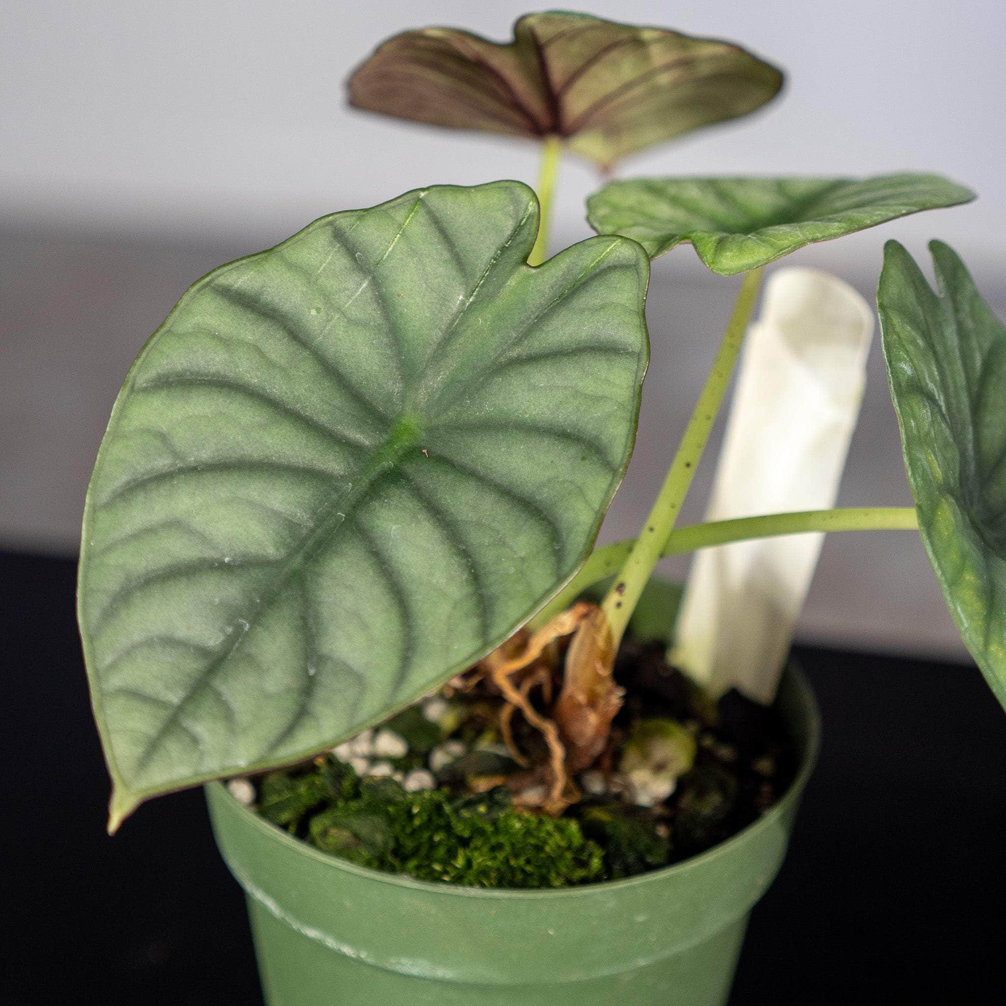 A medium size Alocasia with very stiff thick leaves. Spectacular markings.