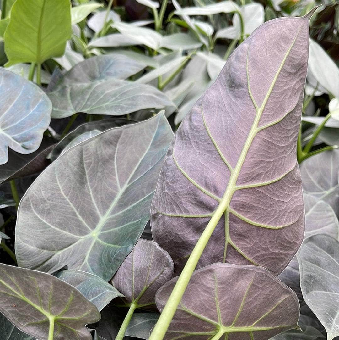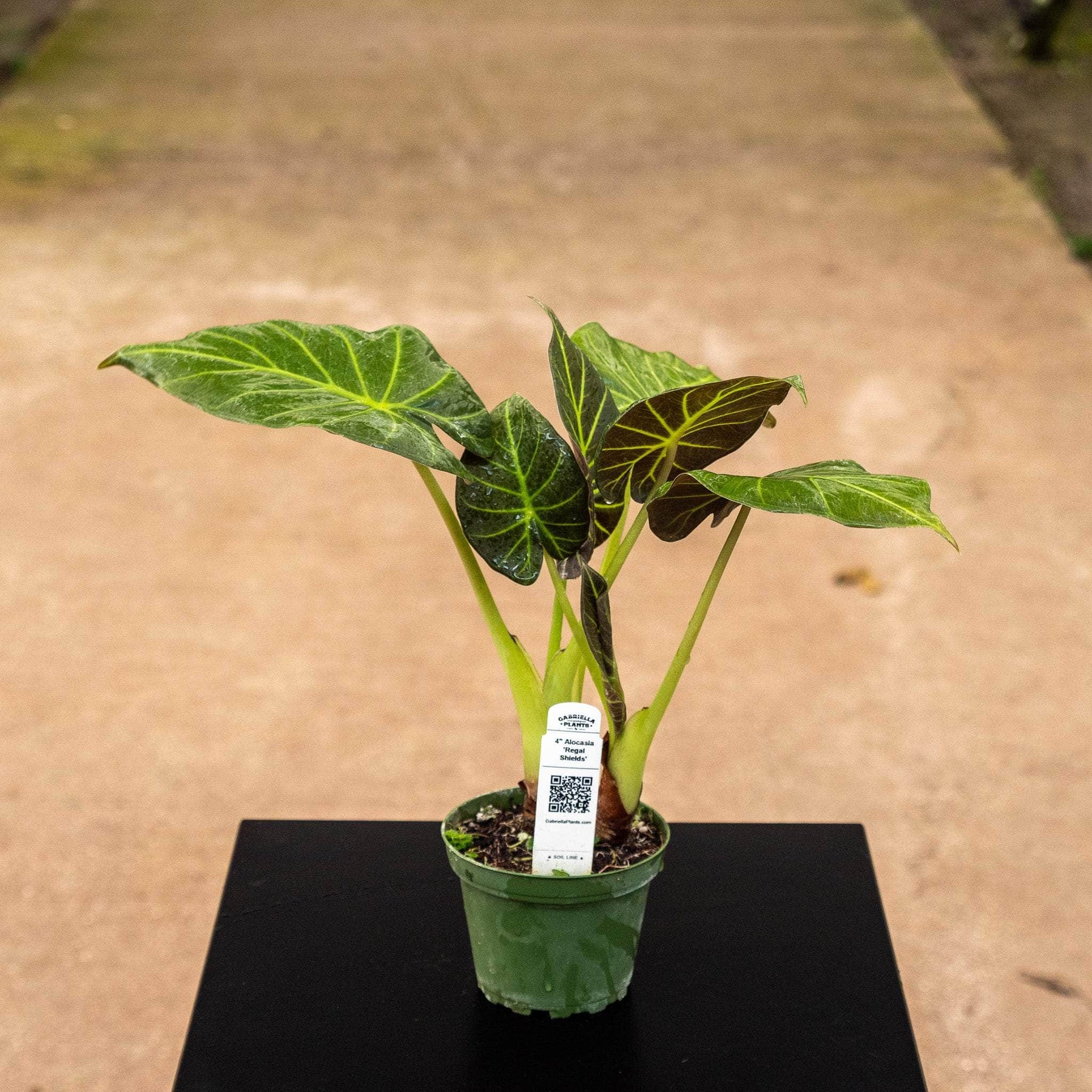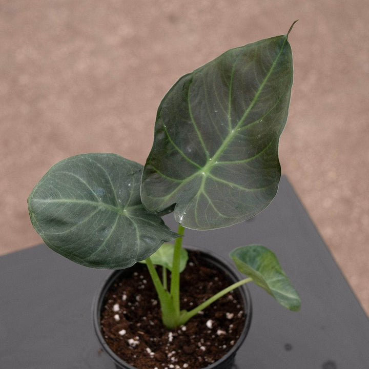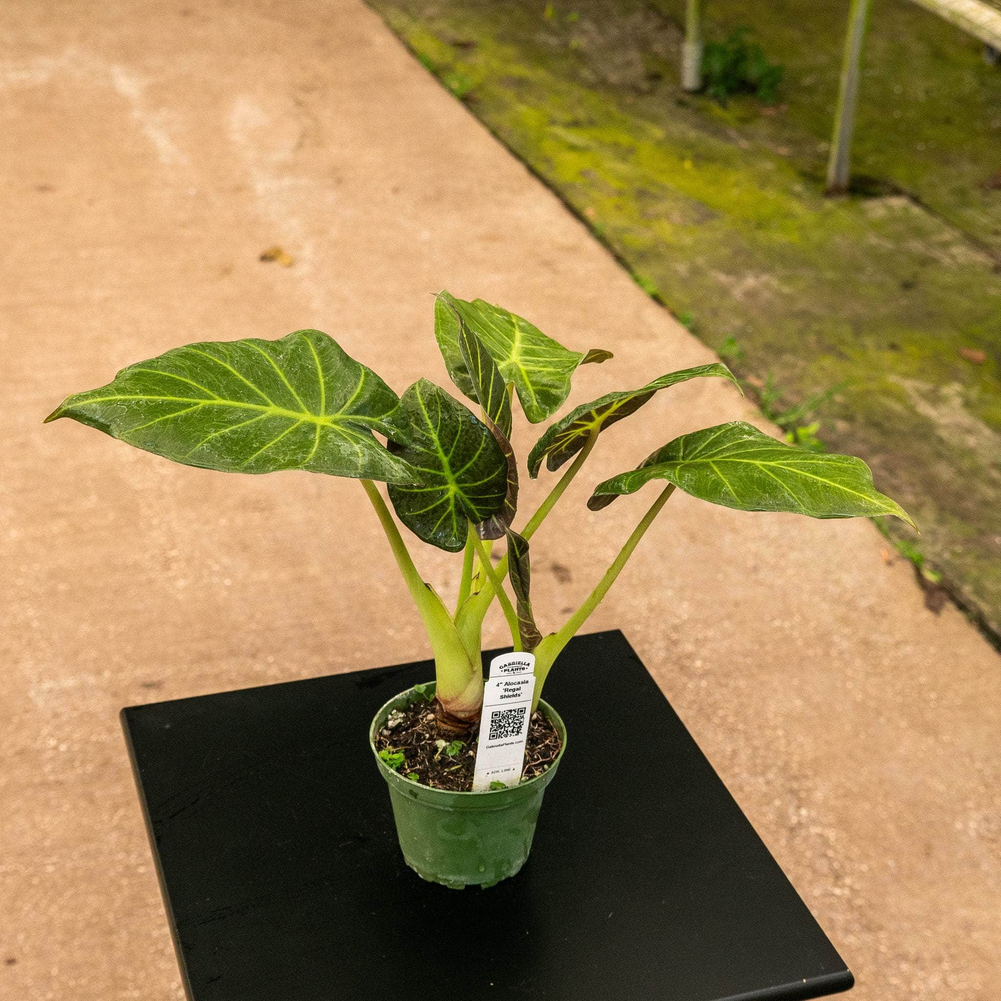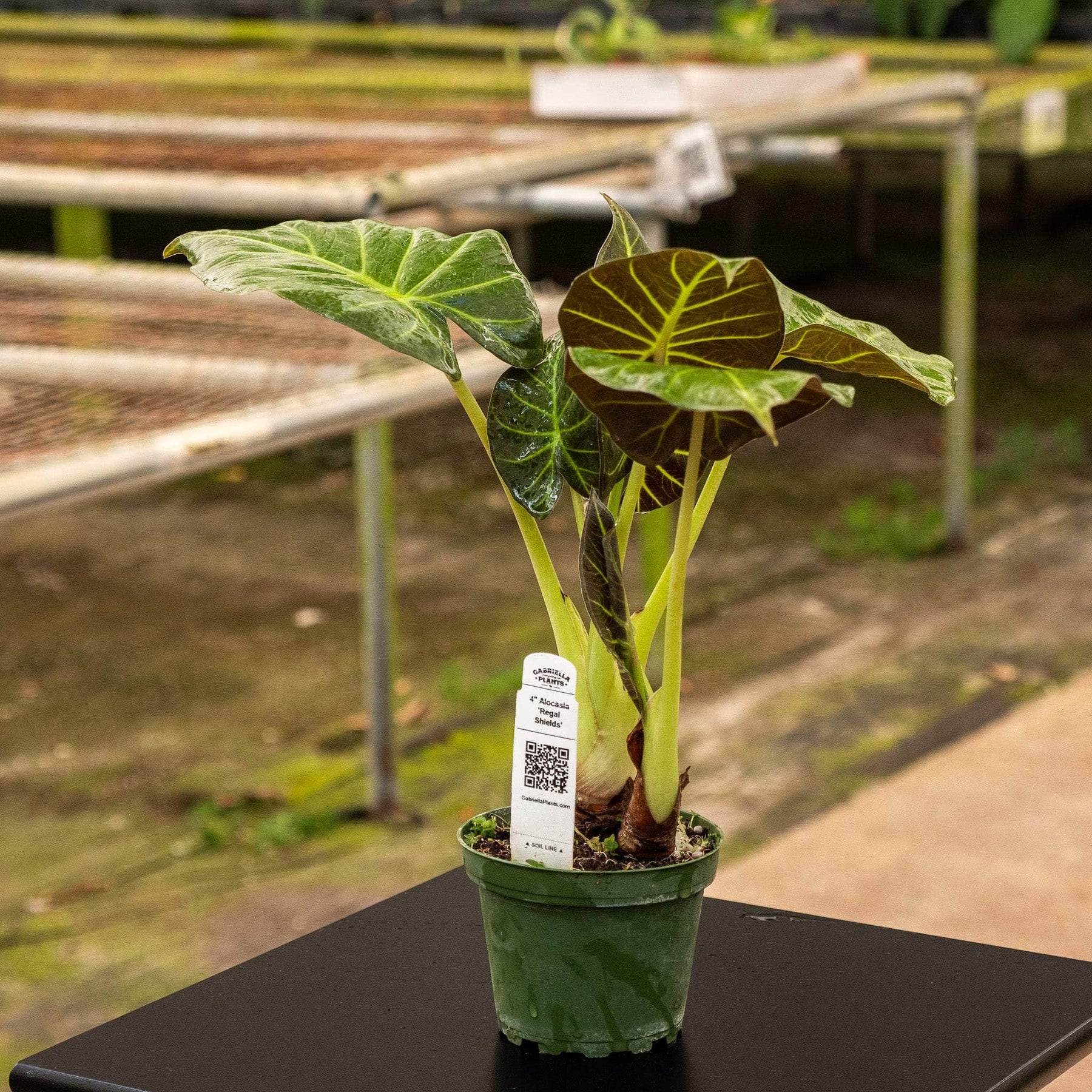 Alocasia 'Regal Shields' is the hybrid cross of Alocasia odora and Alocasia reginula aka "Black Velvet". Getting it's cold tolerance and larger stature from odora, and it's unique coloration and pleating from reginula, 'Regal Shields' is the perfect combination of both of these plants!
