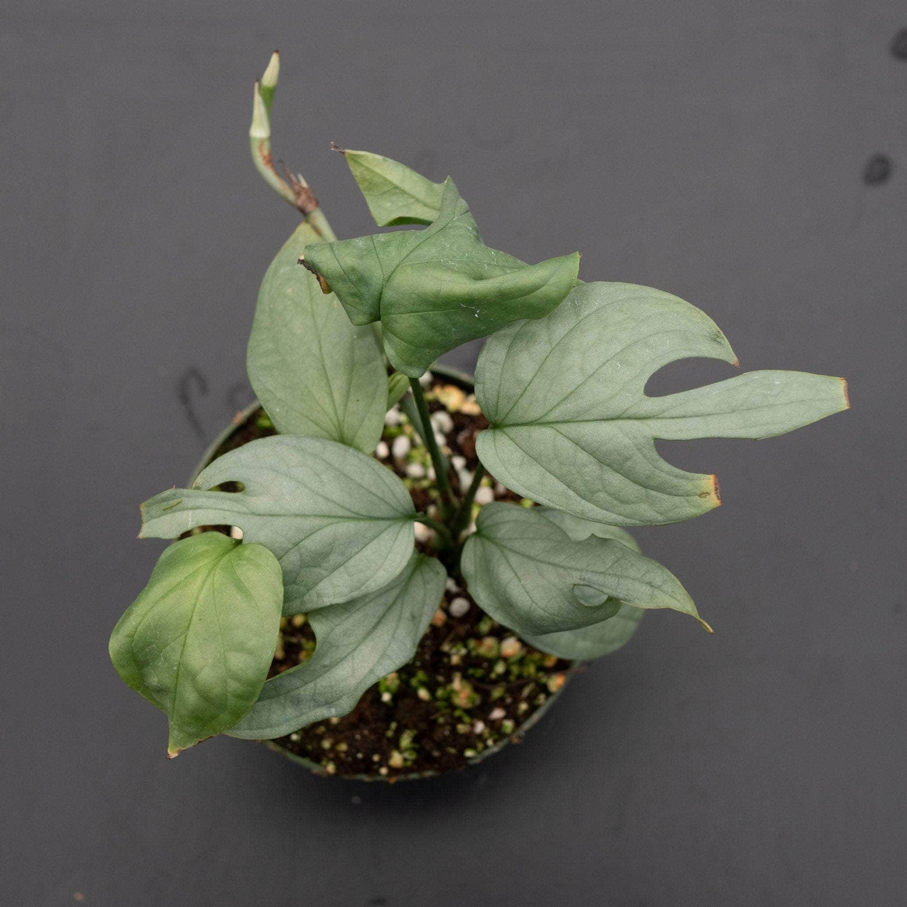 The amazing foliage on Amydrium medium 'Silver' is a glossy silver green that develops several to many round to oval fenestrations near midrib during its juvenile stage, and entire to once or twice perforated once it reaches maturity.