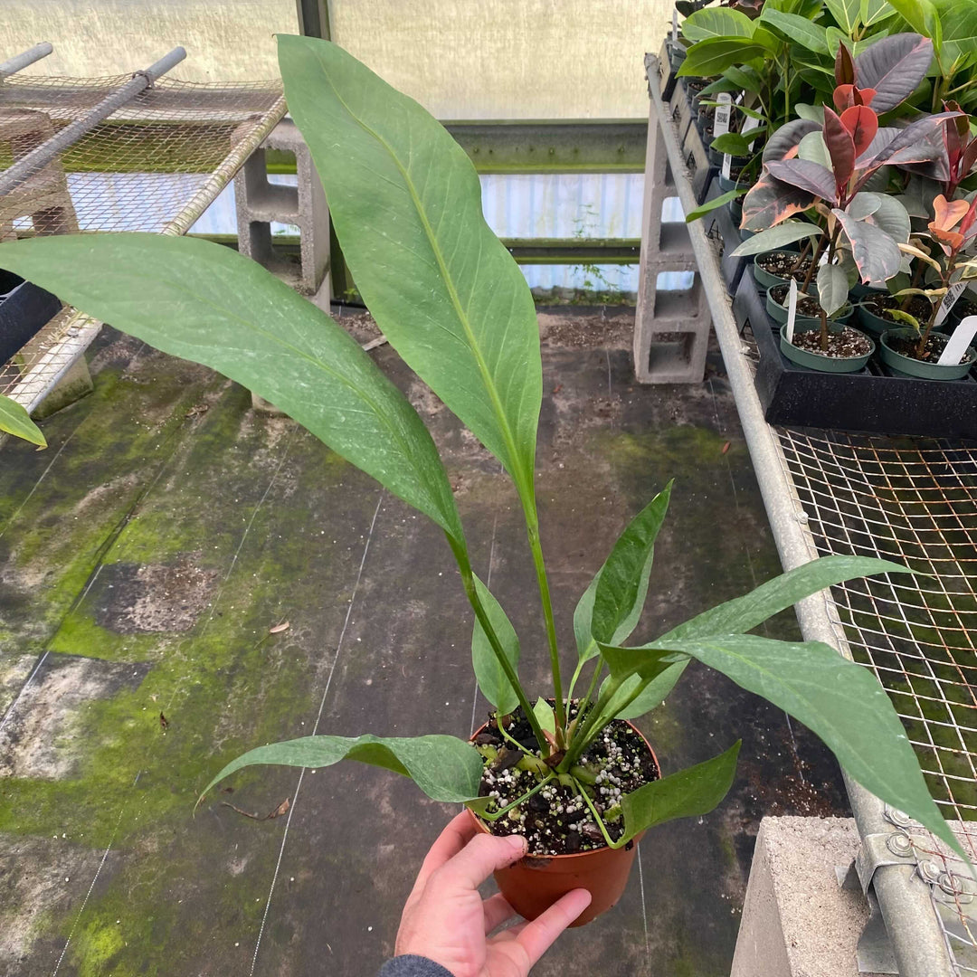 This foliage Anthurium will get HUGE leaves and a large dark BLACK inflorescence! Amazing birdsnest type Anthurium rarely offered for sale!