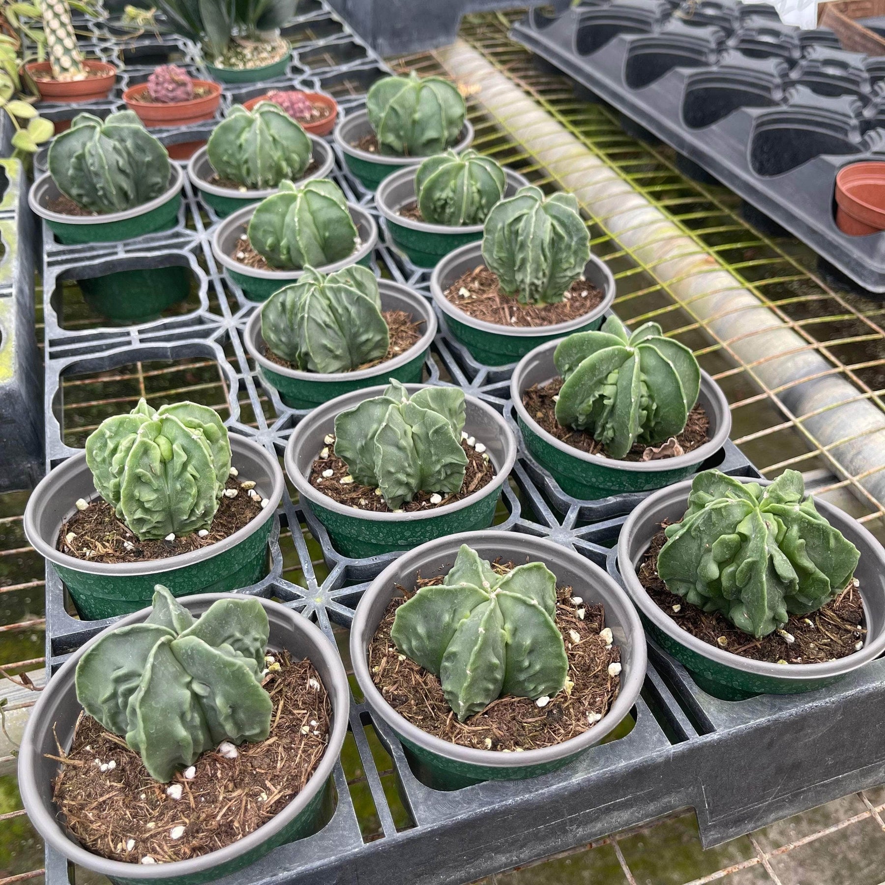 Variegated and albino cacti are regarded as choice and difficult in cultivation, but despite that, these are relatively easy to grow! They cannot tolerate prolonged exposure to direct sunlight, so grow them in half-shade or under filtered sun. Water sparingly from March till October and keep dry in winter.