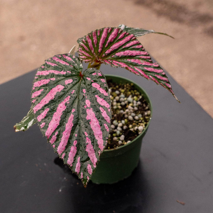 This is an incredibly show-stopping subspecies of begonia with large pink striped leaves! Begonia brevirimosa subsp. exotica is a humidity loving species and are perfect for terrariums or sealed enclosures.