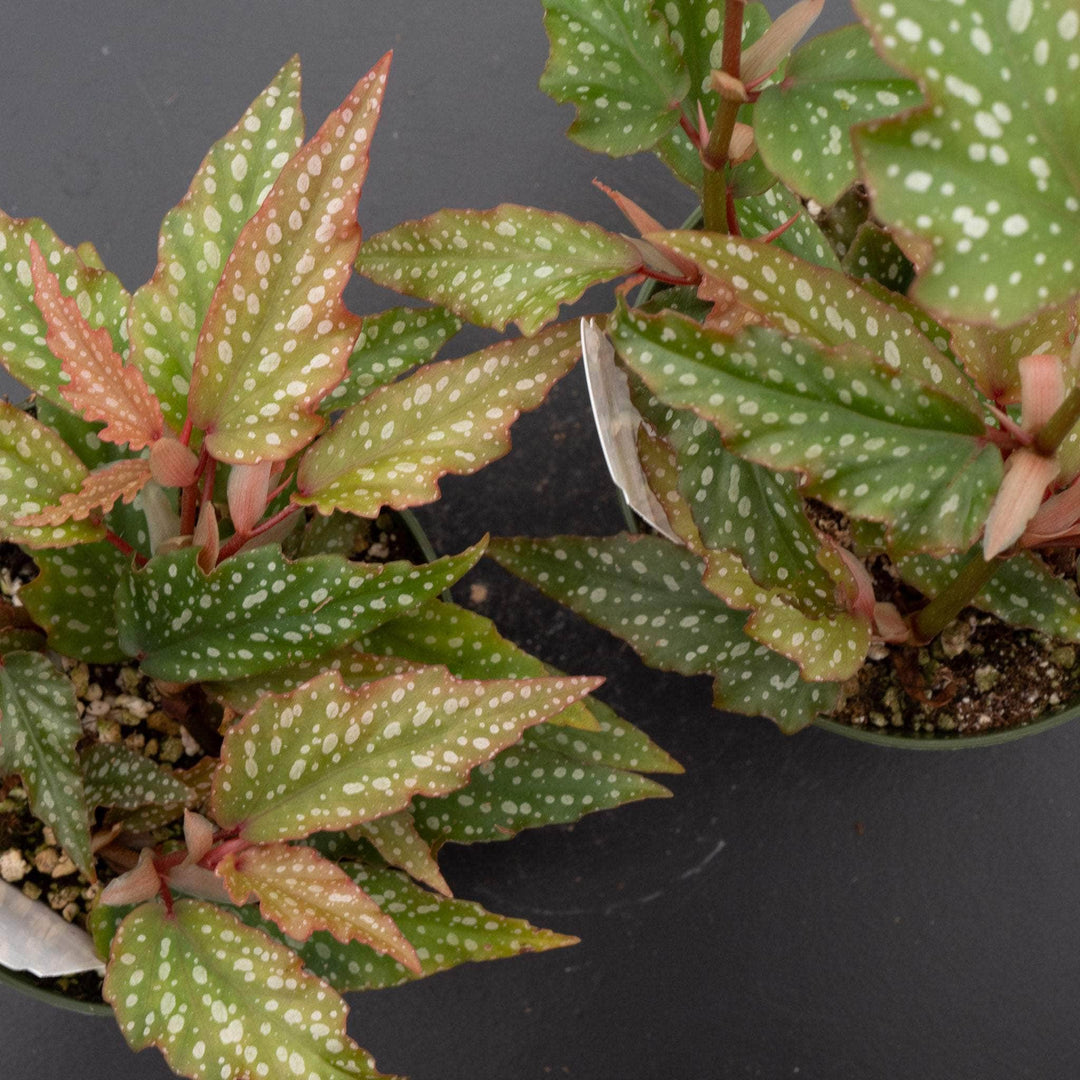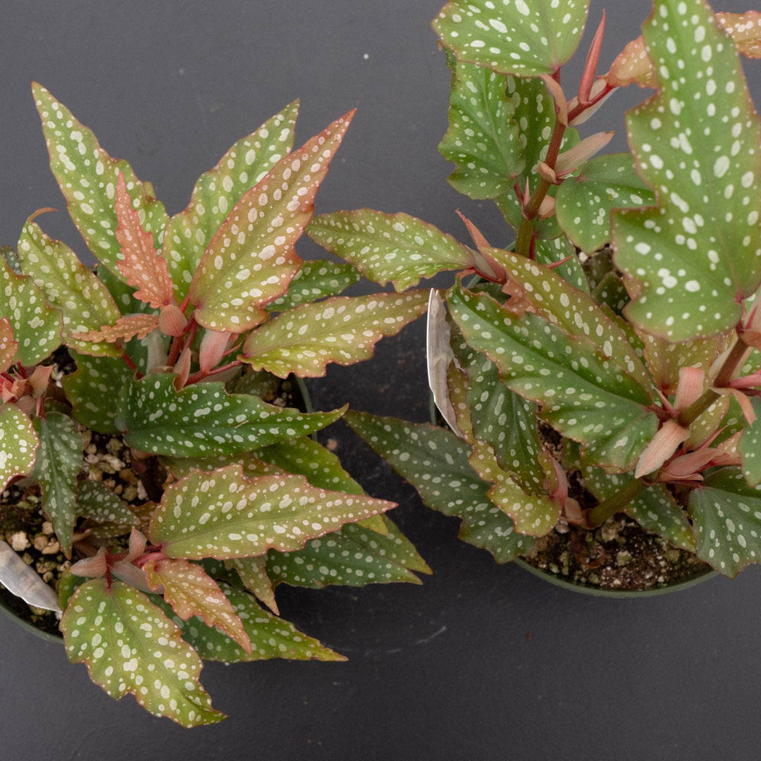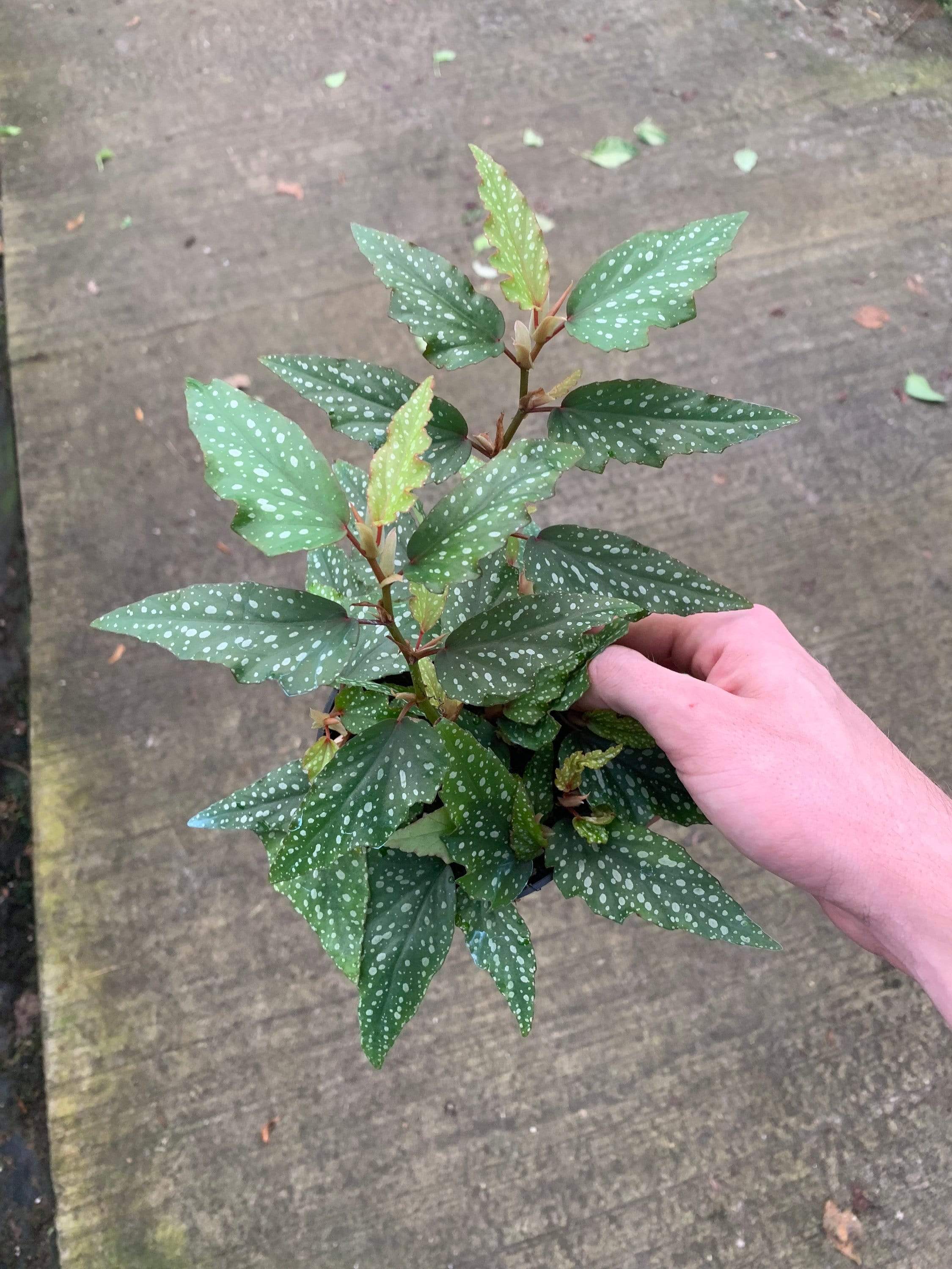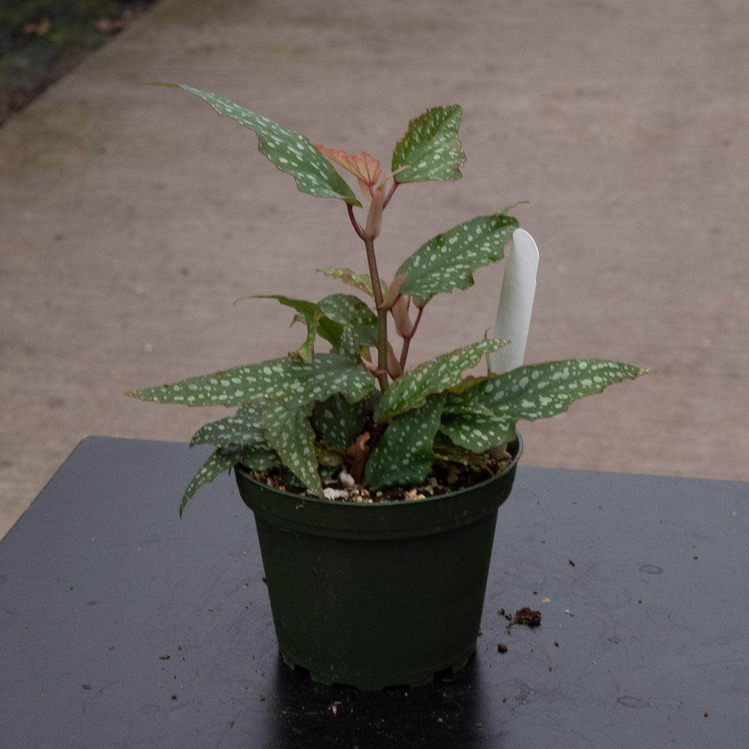 We cannot 100% confirm the actual variety of Begonia that this is as we rescued the stock baskets out of the trash several years back, perhaps even a decade ago, but according to a few plant friends this variety seems to most closely match what I have to offer! These beautiful variegated plants do well in low light and grows rather quickly.