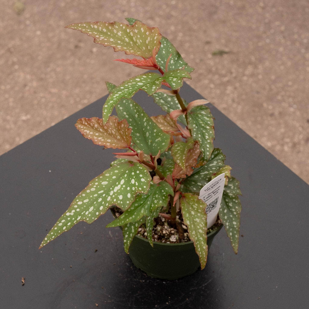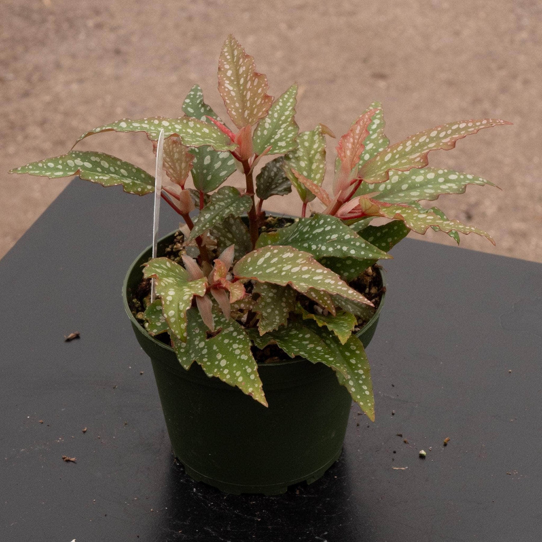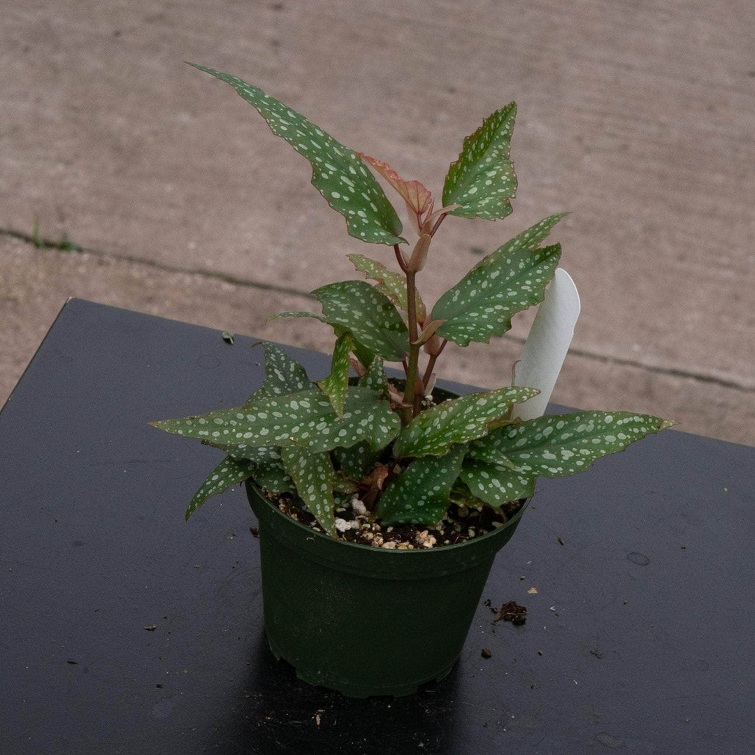 We cannot 100% confirm the actual variety of Begonia that this is as we rescued the stock baskets out of the trash several years back, perhaps even a decade ago, but according to a few plant friends this variety seems to most closely match what I have to offer! These beautiful variegated plants do well in low light and grows rather quickly.