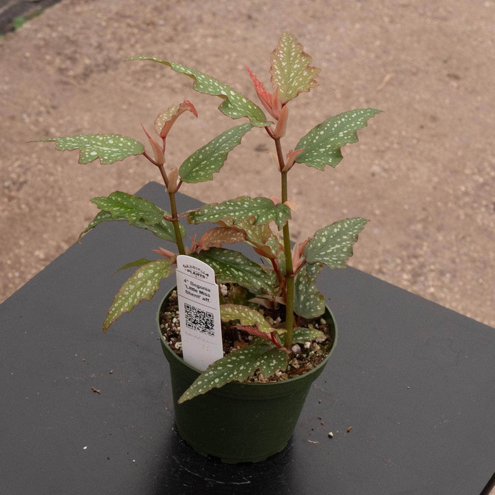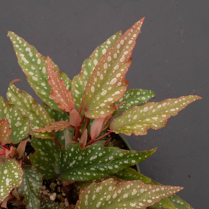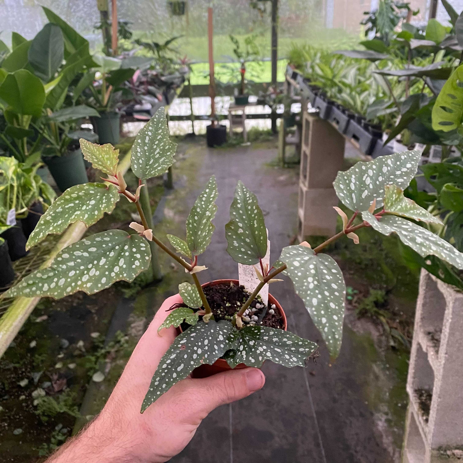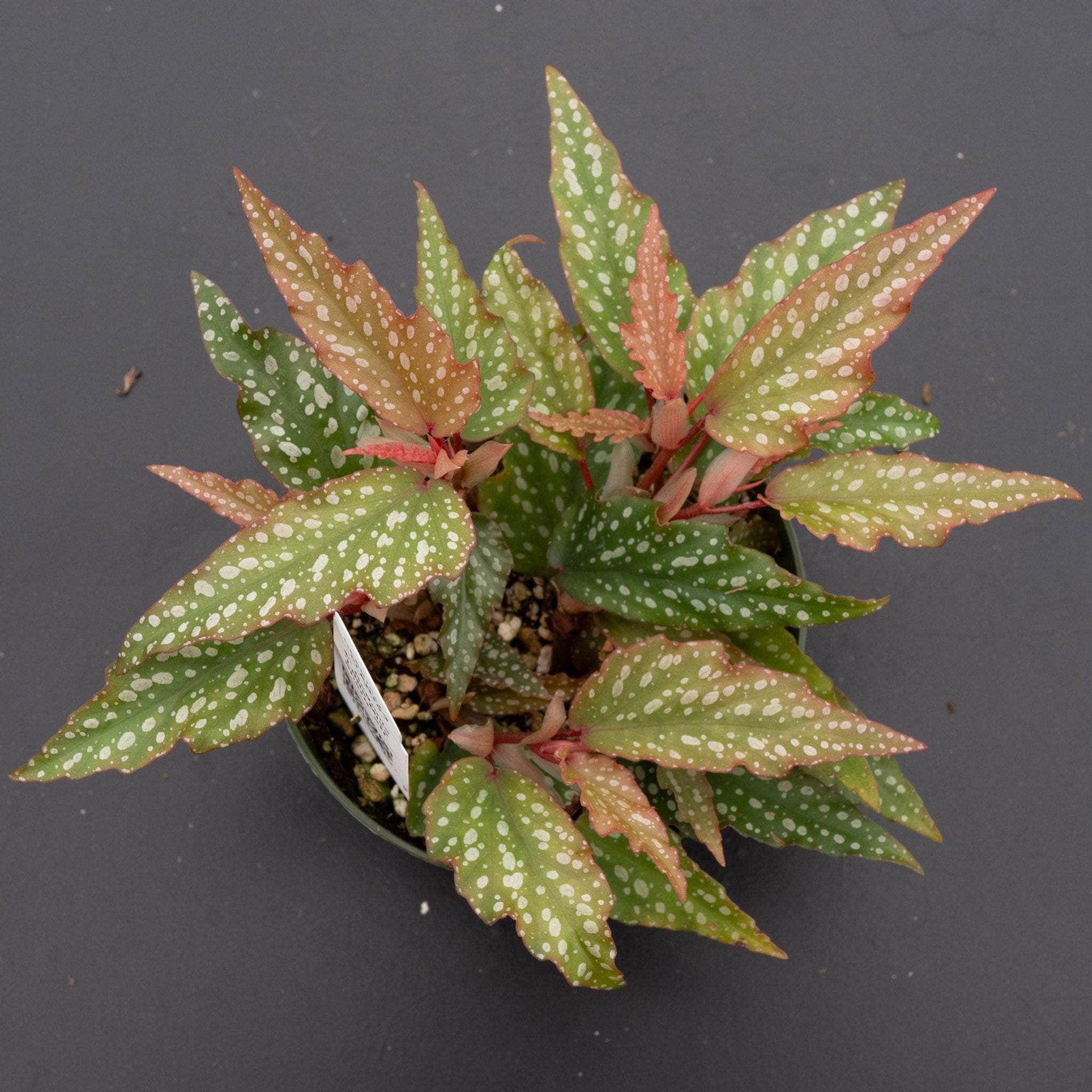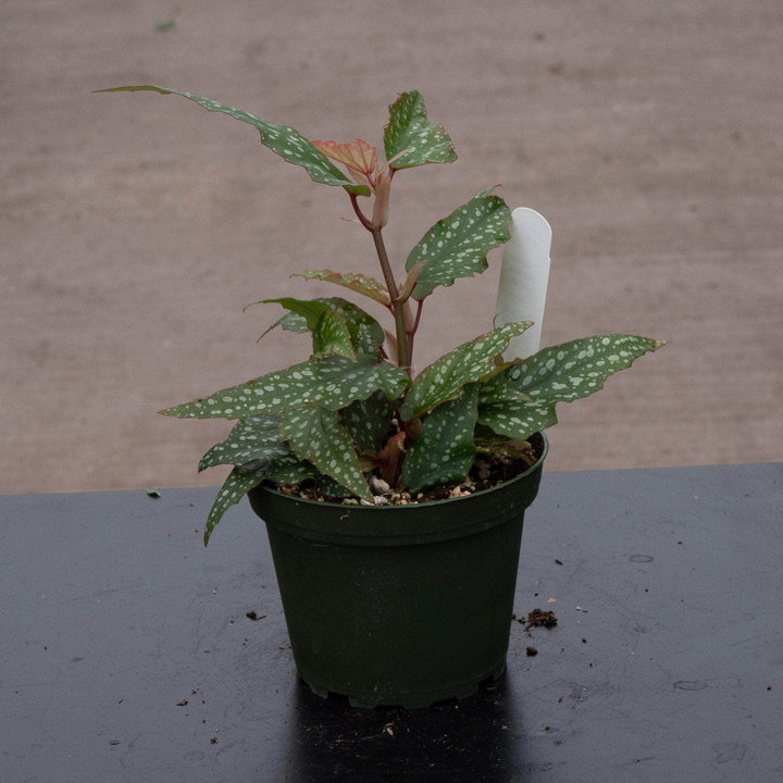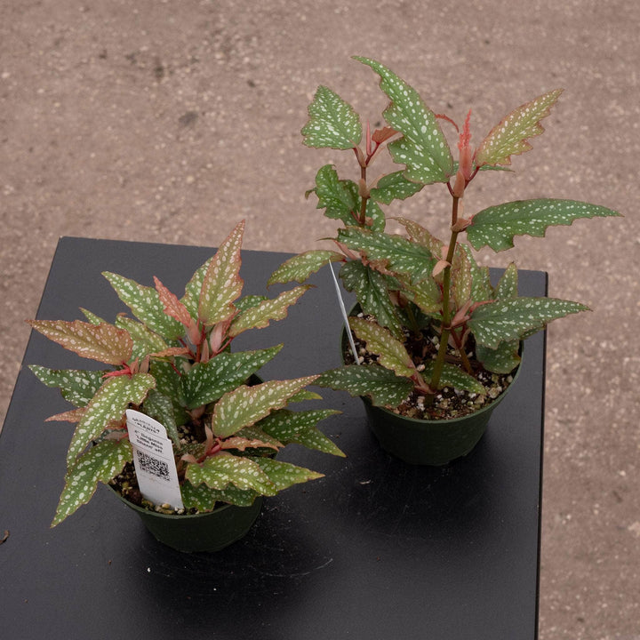 We cannot 100% confirm the actual variety of Begonia that this is as we rescued the stock baskets out of the trash several years back, perhaps even a decade ago, but according to a few plant friends this variety seems to most closely match what I have to offer! These beautiful variegated plants do well in low light and grows rather quickly.