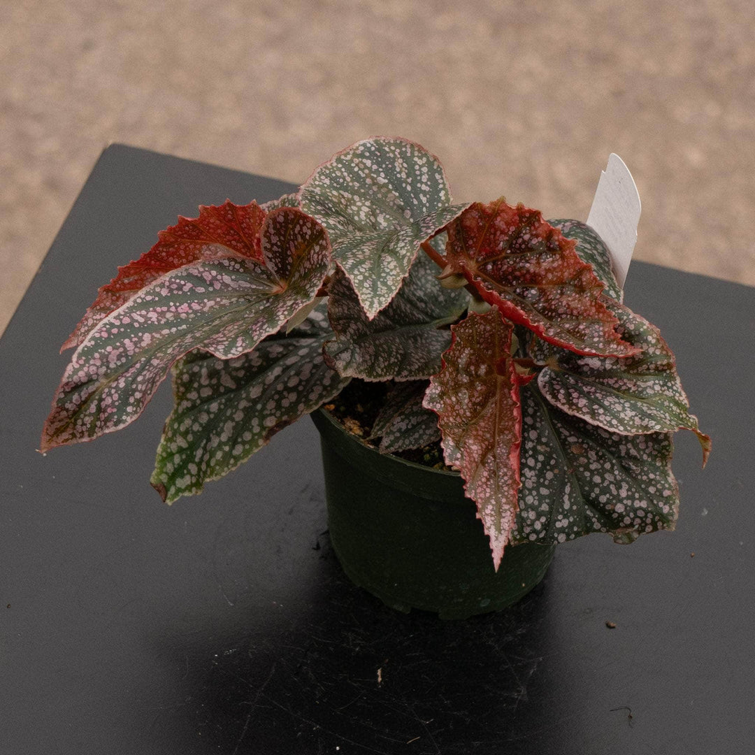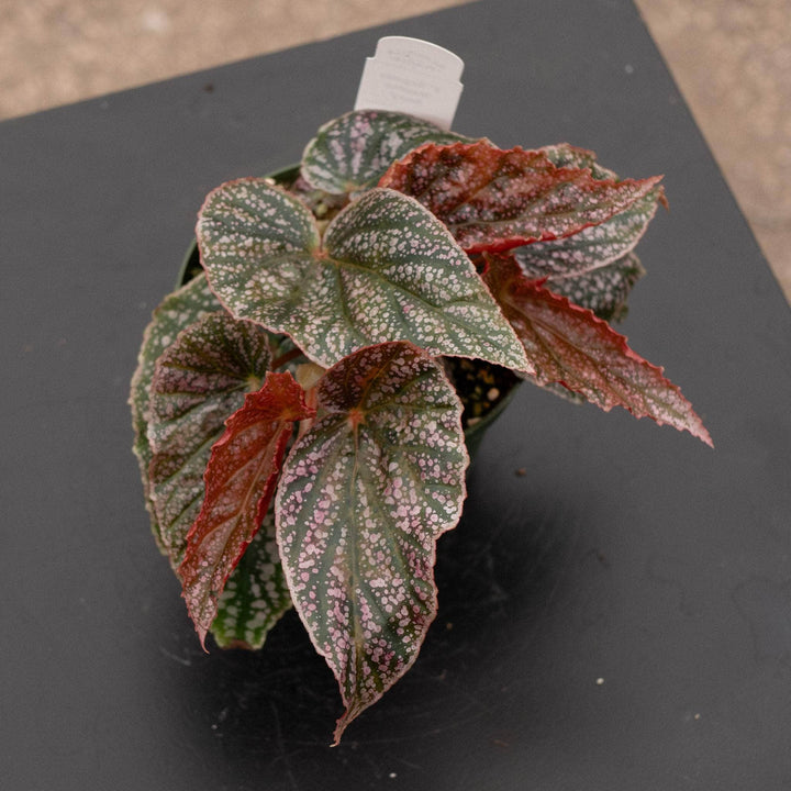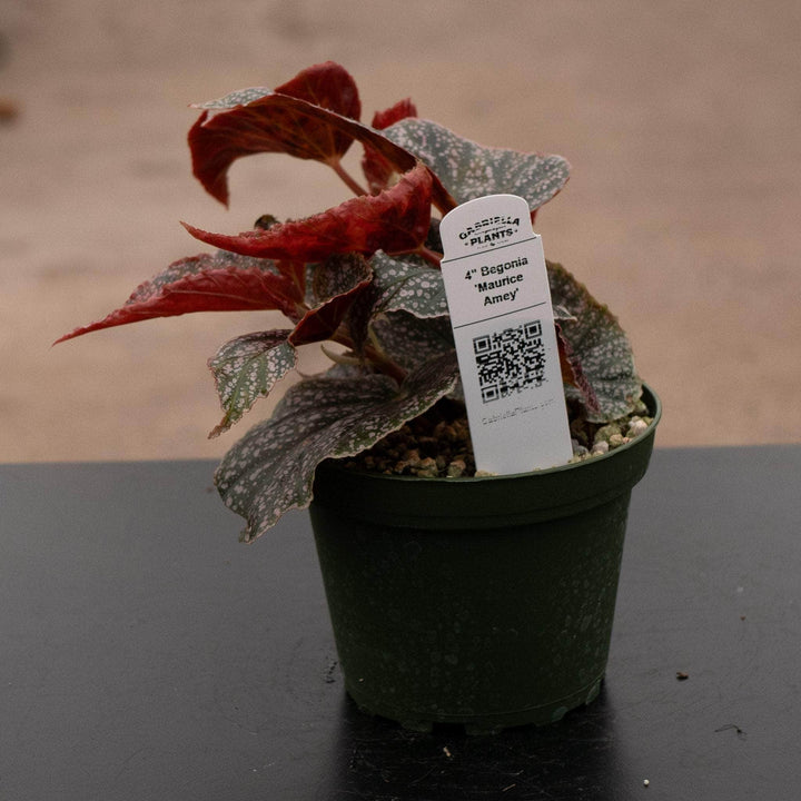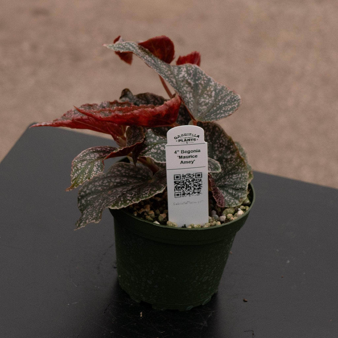 This beautiful begonia was named in honor of the American Begonia Society member, Maurice Amey, that develops large metallic pink leaves with silver spots and small clusters of bright pink flowers! Reaches an average of 2'-3' tall.