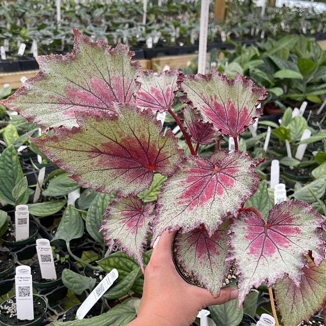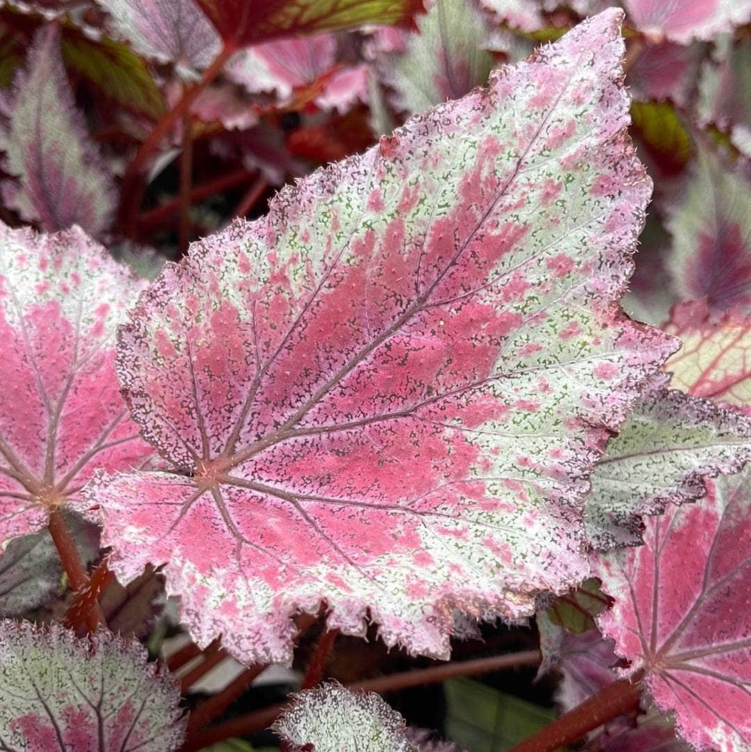 NEW Begonia Rex cultivar 'Jurassic Jr. Red Splash' has a compact growth habit in a densely mounded shape like that of a mushroom with the smallest leaves of all the Jurassic varieties.
