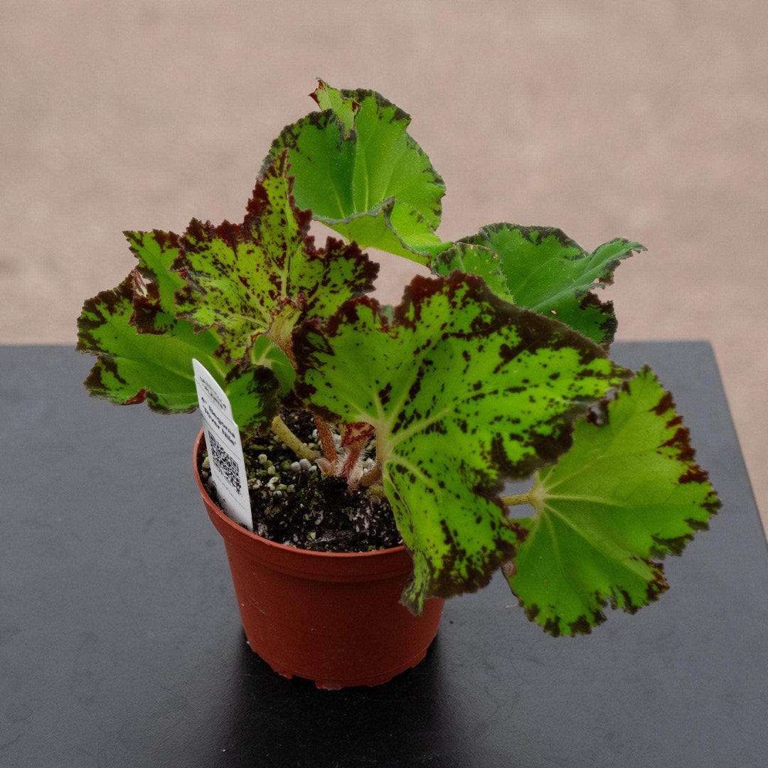 Begonias enjoy lots of bright indirect light, but no direct sun. These can grow in artificial light like fluorescent, although experiences vary. Let the top of the soil dry before watering again. They enjoy a good soak, but need to dry out mostly between watering. They like warmer temperatures and should not be subjected to under 60 degrees. Although Begonias like humidity, they do not like being misted. Because of their textured surface, molds and mildew can form if the plant leaves are overly wet.