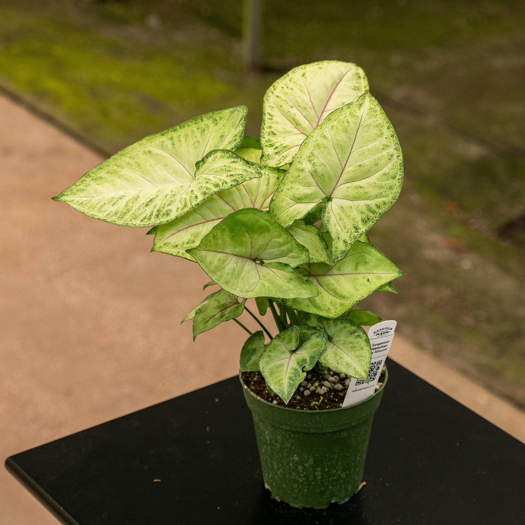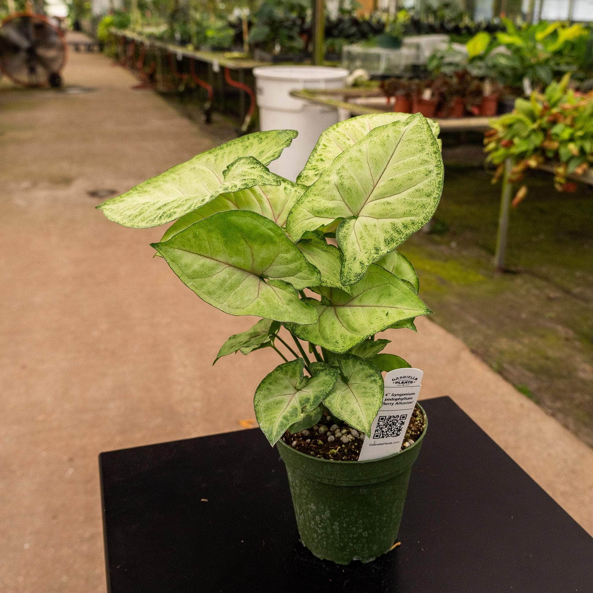 One of the many Syngoniums in the Allusion Series, Syngonium 'Berry Allusion' was selected for its prolific suckering ability, colorful foliage and compact appearance. This Syngonium showcases olive-green leaves with light-pink veins. Collect them all and make sure to include 'Berry Allusion'!