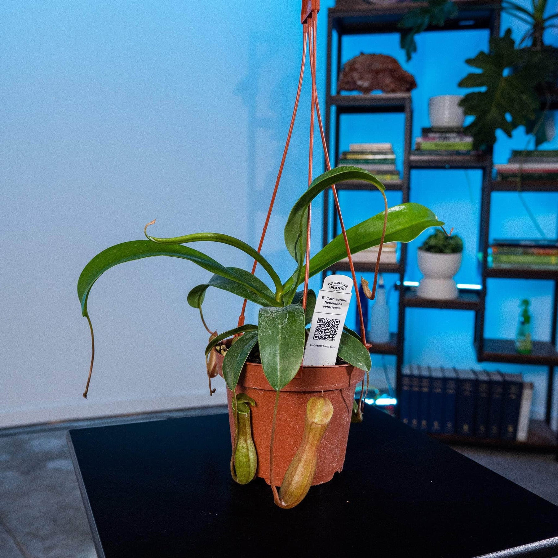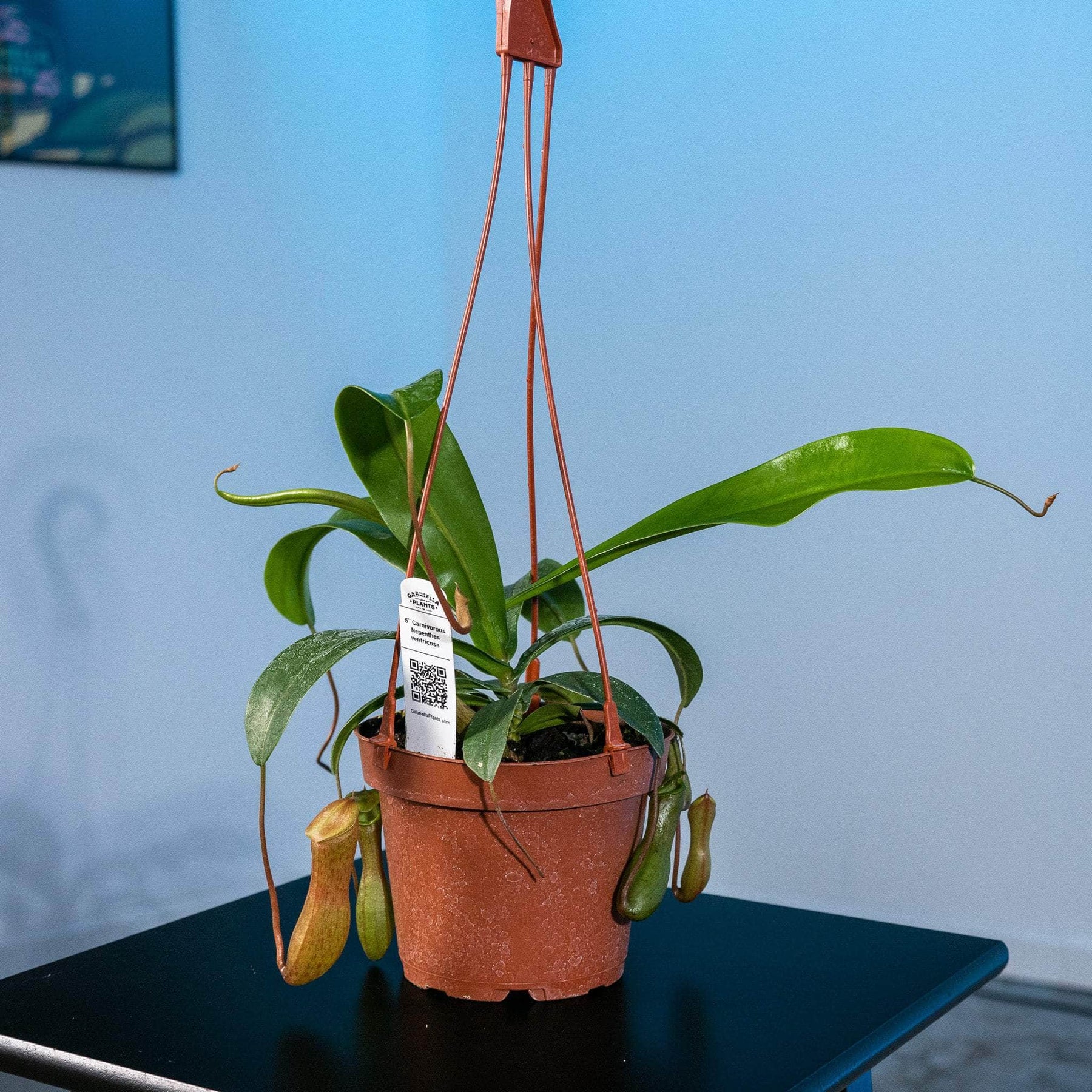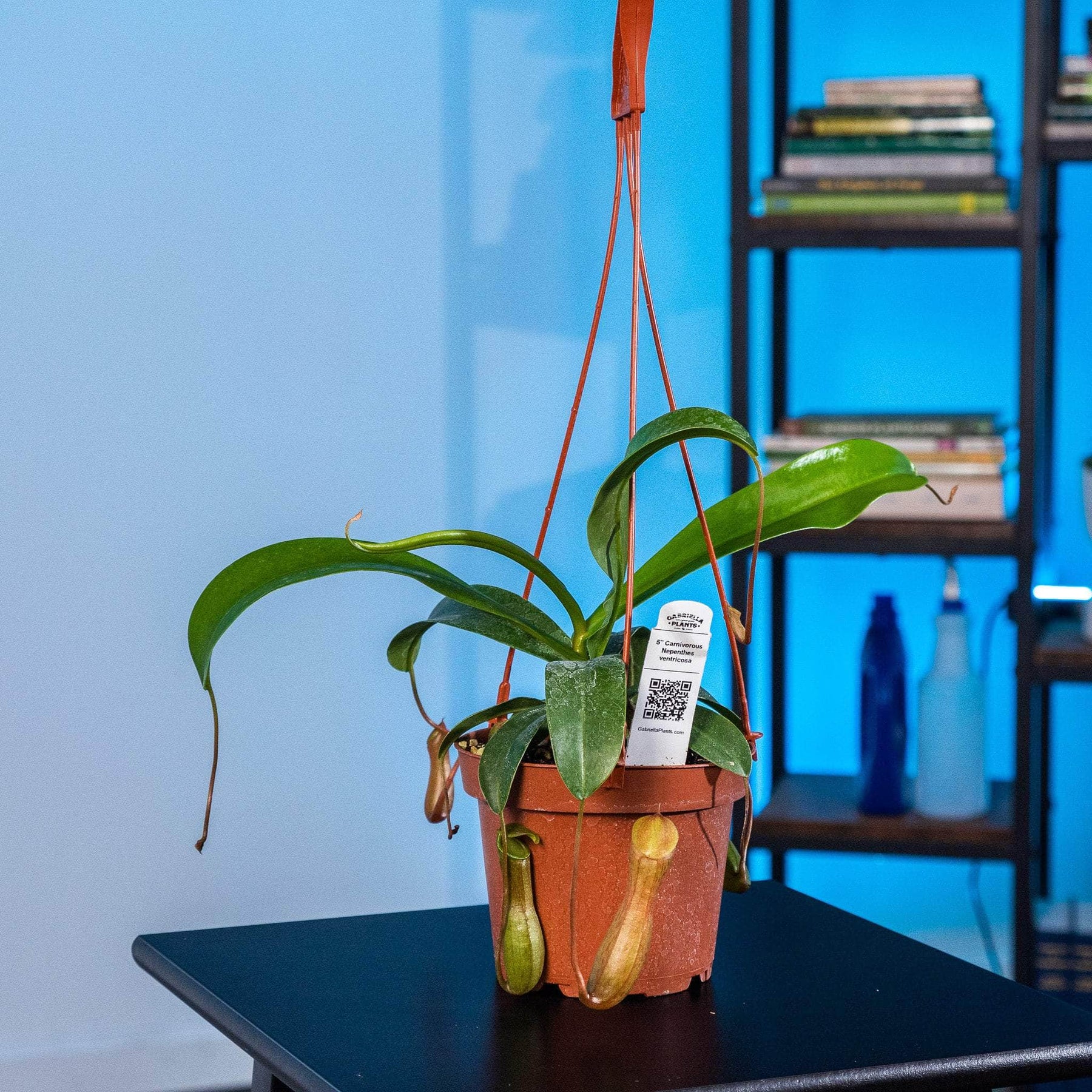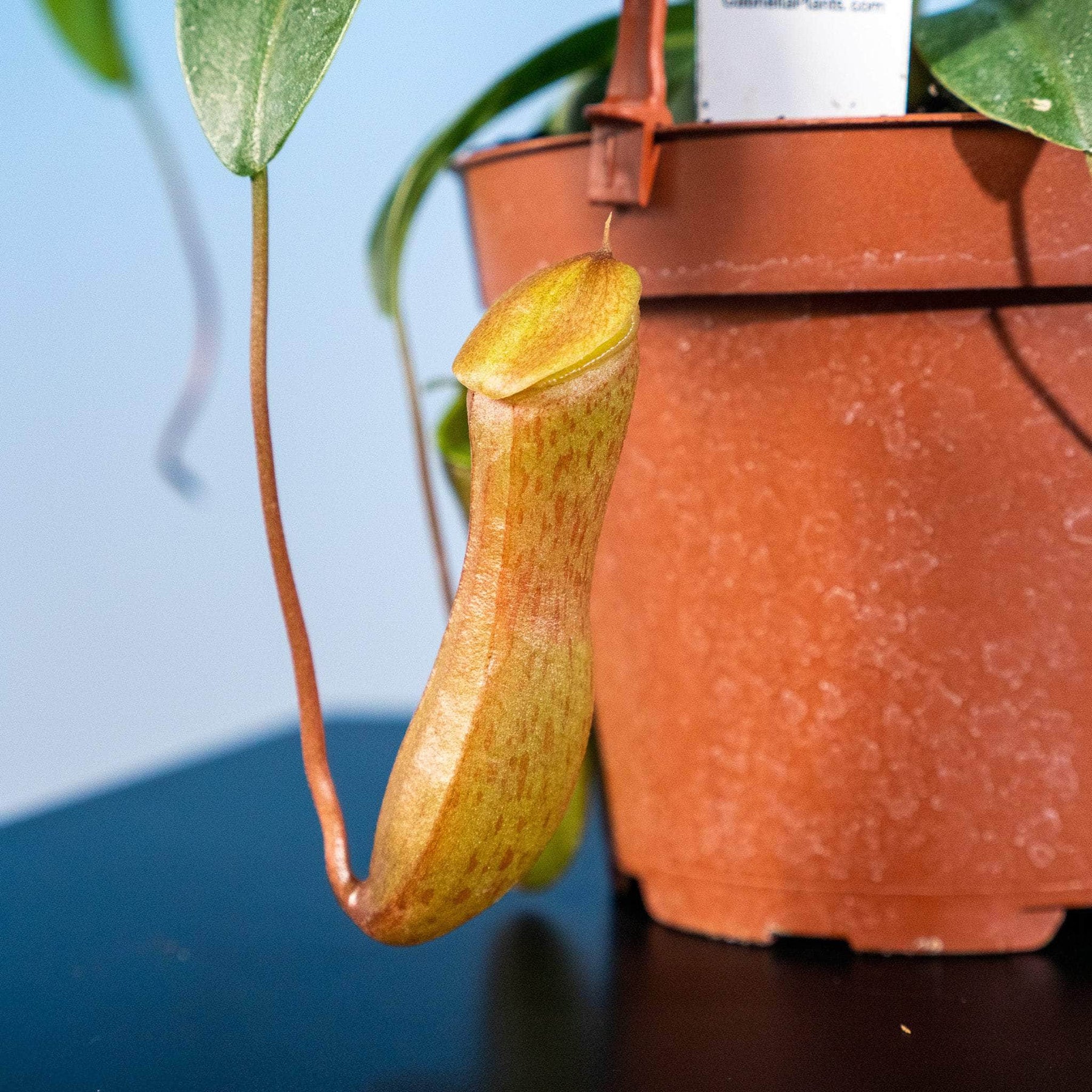 Keep in a warm and bright spot with some humidity, appreciates a bit of morning sun - avoid mid day direct sunlight. Ensure the medium never dries out completely, maintain consistent moisture but be sure it has proper drainage and does not remain soggy- do not allow your Nepenthes to sit in water. Use rainwater, distilled water or reverse osmosis water. Be careful with bottled water as these may contain salt which will kill your pitcher plant. Keep a small amount of water in each pitcher!