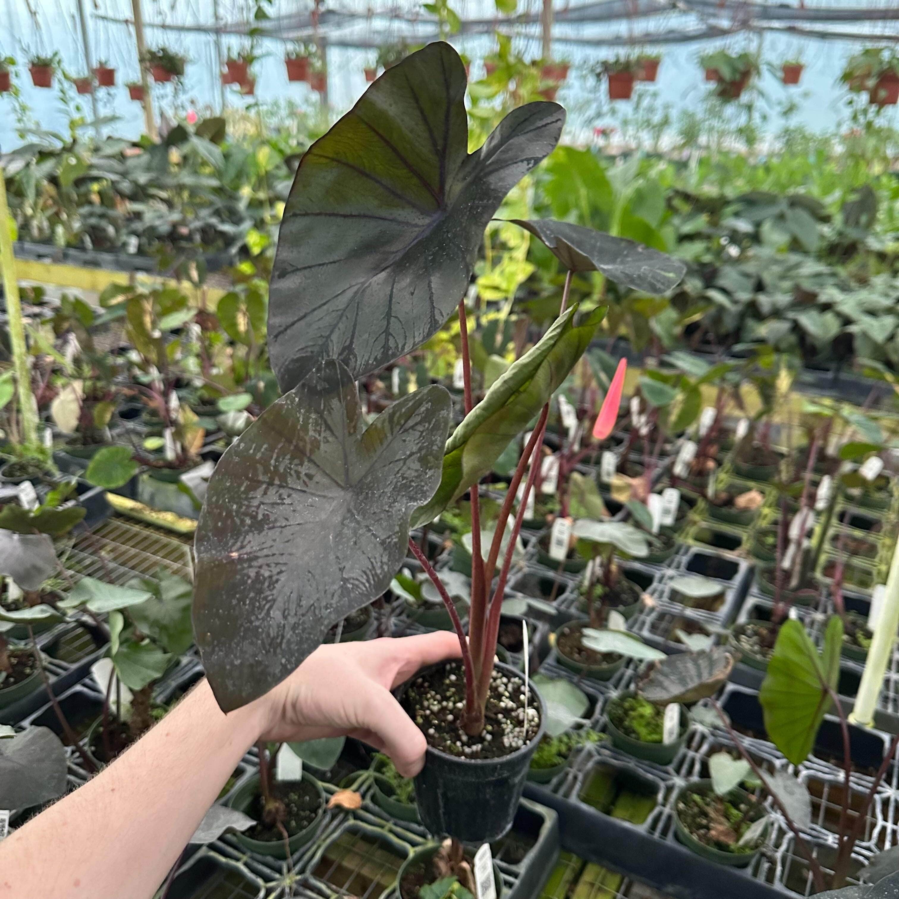 Special note for this plant: These can be difficult to ship and we are NOT responsible for this specific item's arrival condition unless significant stress was caused by being in transit, such as a broken box or snapped stems. Leaf blemishes are normal, as they do not like the lack of light at all, especially this size, but it's the only size we can ship economically. These Colocasia NORMALLY suffer some leaf loss but they will bounce back if given the proper moisture/sunlight/warmth.