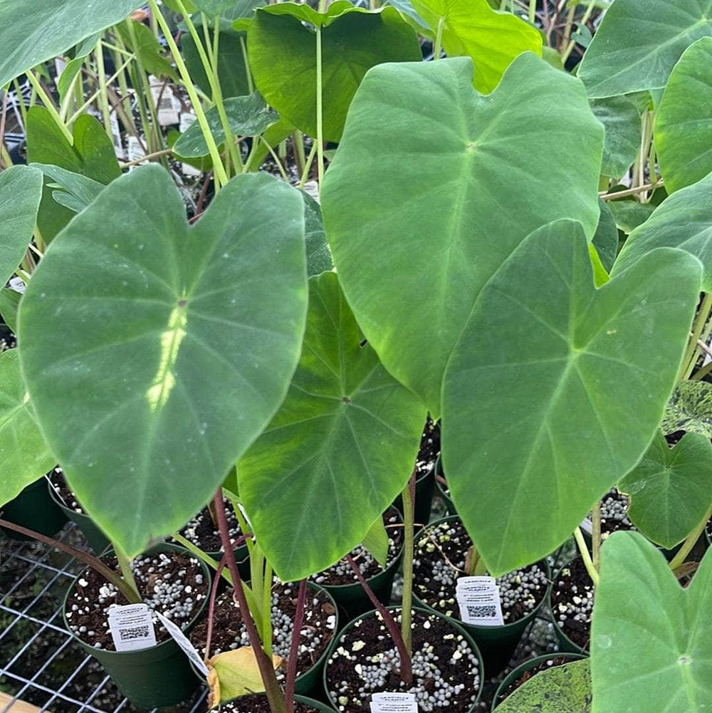 Special note for this plant: These can be difficult to ship and we are NOT responsible for this specific item's arrival condition unless significant stress was caused by being in transit, such as a broken box or snapped stems. Leaf blemishes are normal, as they do not like the lack of light at all, especially this size, but it's the only size we can ship economically. These Colocasia NORMALLY suffer some leaf loss but they will bounce back if given the proper moisture/sunlight/warmth.