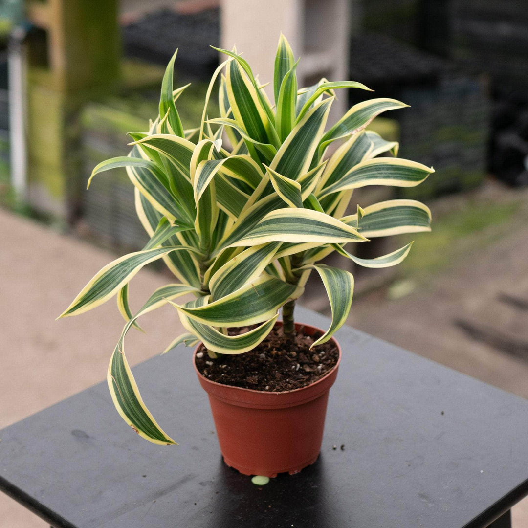 Dracaena are beloved in plenty of homes across the world. They require less frequent watering than most plants, but do enjoy the occasional mist over their leaves. Be sure your pot has really good drainage, water once the top inch or so of soil is dry. They thrive in normal household temperatures but do prefer higher humidity. These do tolerate low light, but for best growth provide with bright indirect light. They are not a fan of full sun.