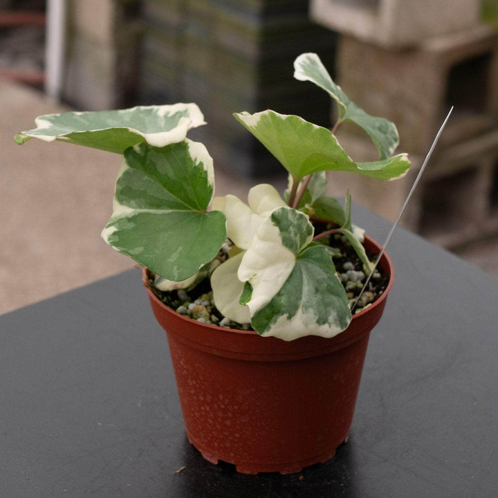 Placed in bright indirect light to part shade, can produce tall stalks with daisy like flowers when mature. Requires consistent moisture and will wilt if allowed to dry out.