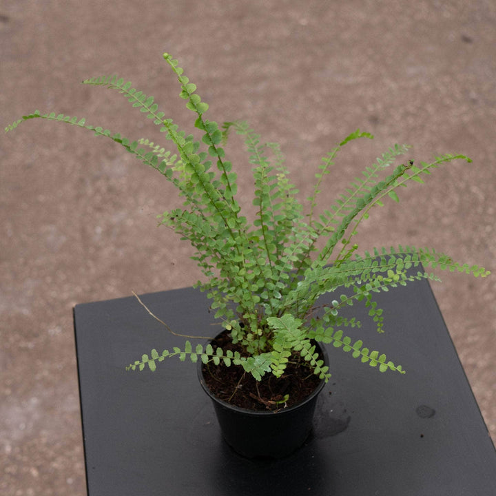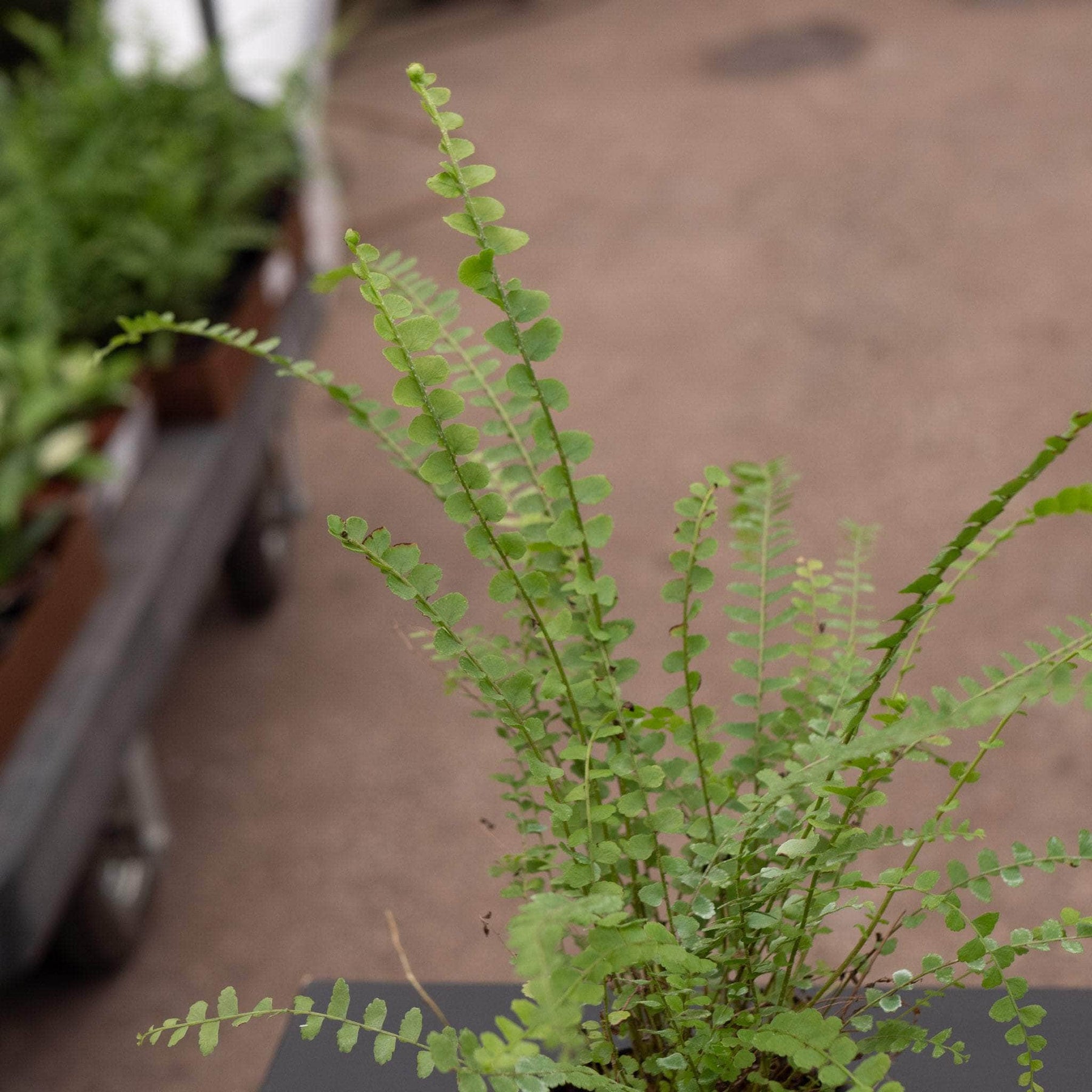 "Lemon Button" is a dwarf variety of the common Boston Fern that shares its resilience and ease of cultivation indoors. Its leaves give off a slight lemony scent during spring and summer, making a really cool addition as an indoor plant for your desk or side table.