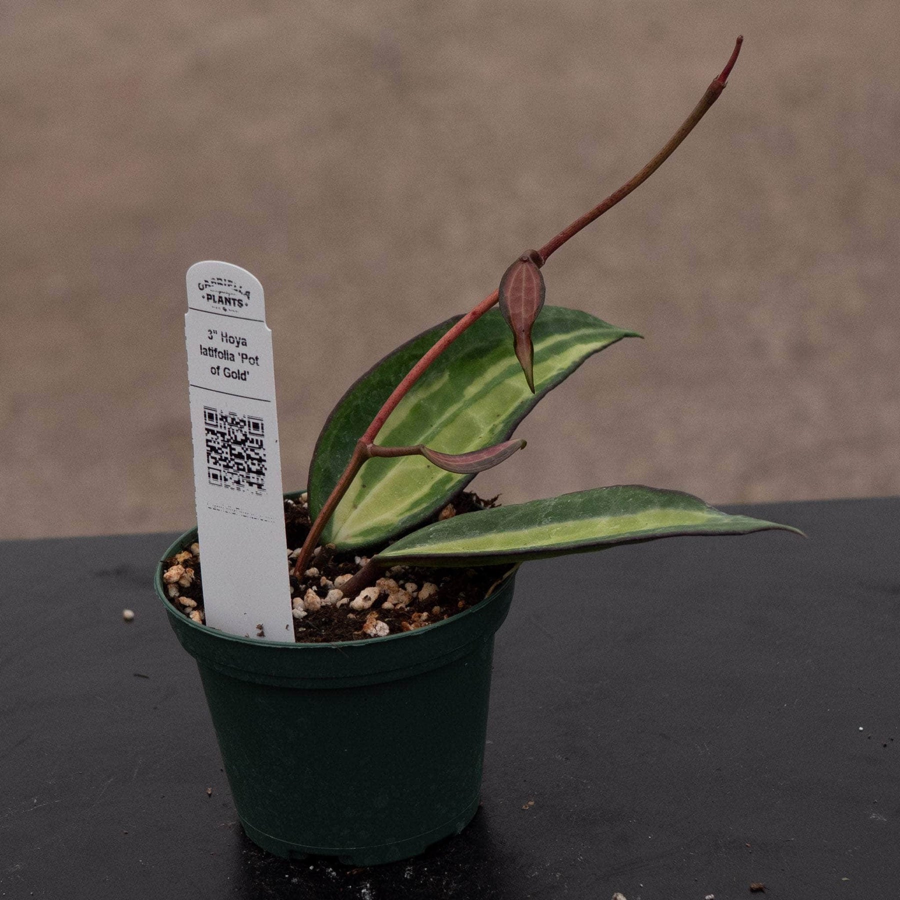 We are excited to start the New Year with a new Hoya to offer you! Hoya latifolia 'Pot of Gold' has stunning variegated foliage and fragrant flowers. Formerly known as Hoya macrophylla Reverse Variegated. Variegation varies, each leaf is its own work of art.
