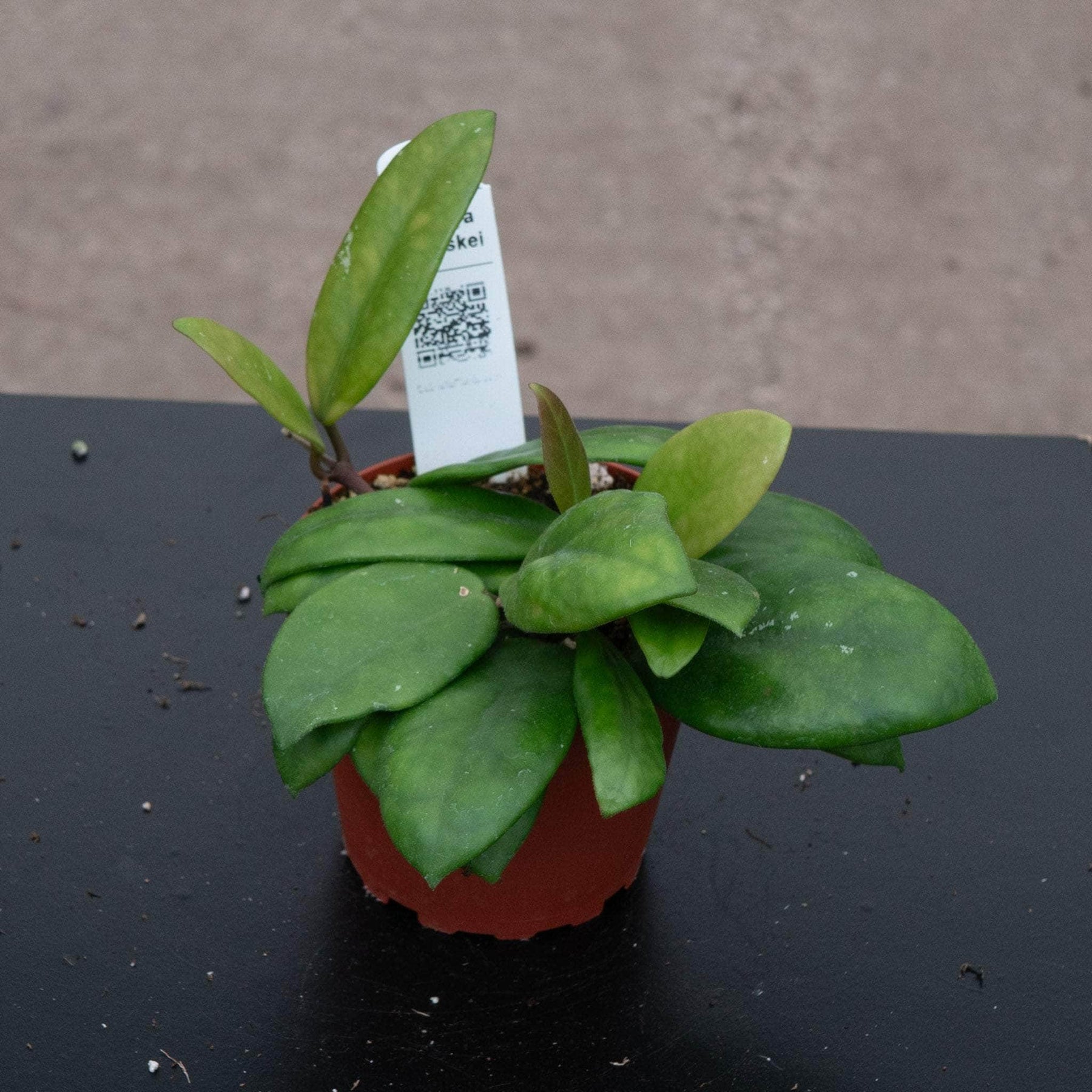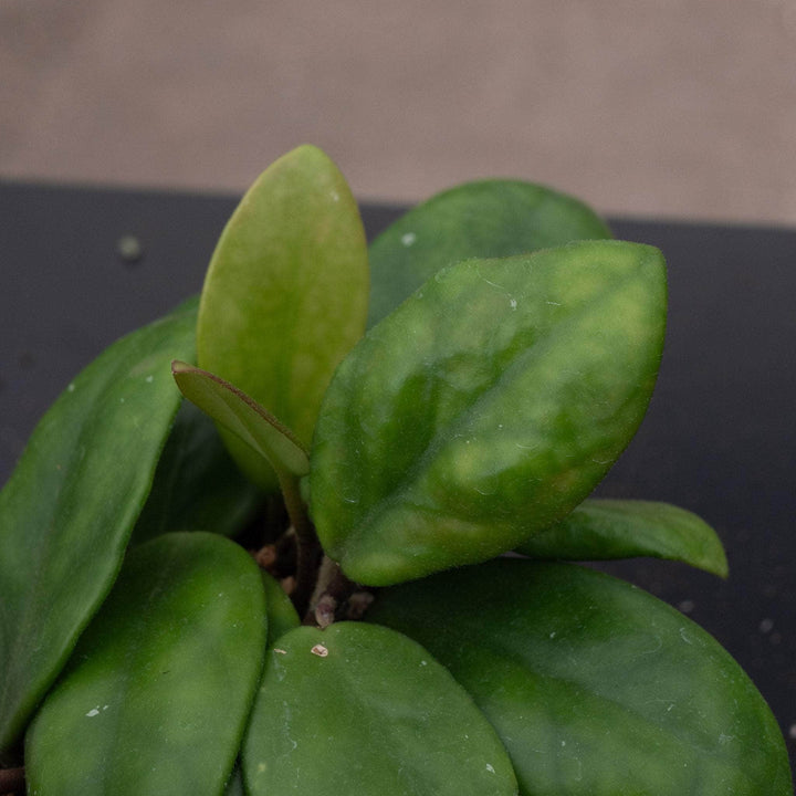 Hoyas are mostly epiphytic creeping, twining or vining plants that have a vast array of different leaf shapes, sizes, textures & colors! If provided with the desired conditions Hoyas can bloom, their flowers varying widely species-to-species with many different colors, sizes & even scents! Many Hoya develop purple spots, streaks or patches on the leaves as a response to light exposure. This is commonly referred to as sun stress, it is completely natural and normal - sometimes the entire leaf can turn various shades of purple/red. This is not disease and is actually a sign that the plant is healthy. Hoya sun stress is generally reversible, the pink, red, or purple swaths/freckles/spots on leaves from bright light is different from sunburn, which causes permanent crispy, white/brown patches. With less light, sun stressed leaves often revert to green, but damaged, burnt spots will not heal - however, the plant can grow new, healthy foliage if conditions are improved gradually.