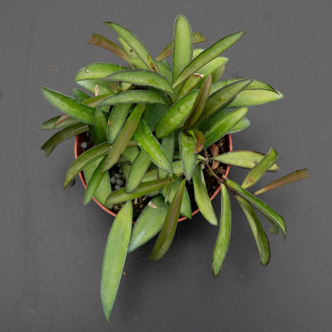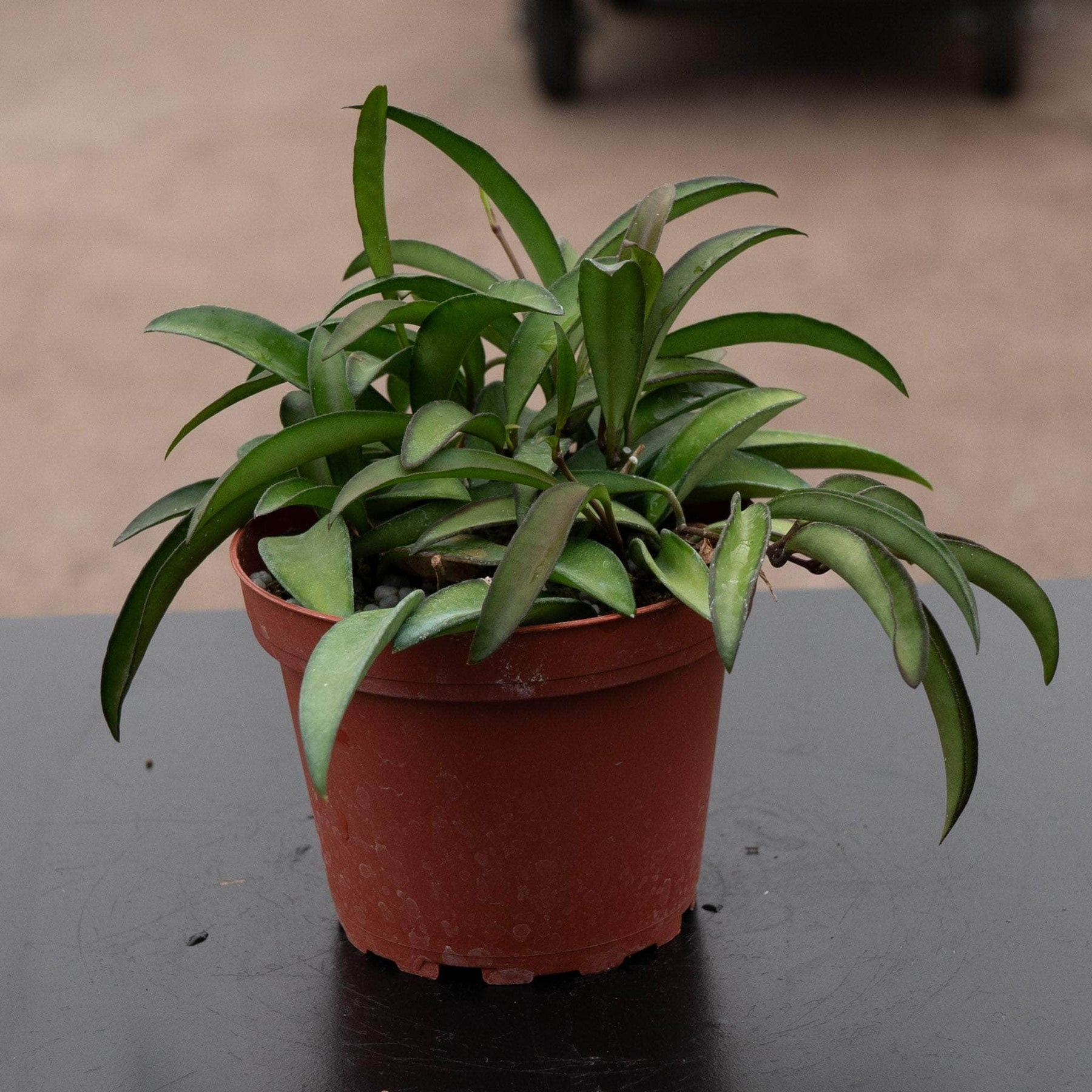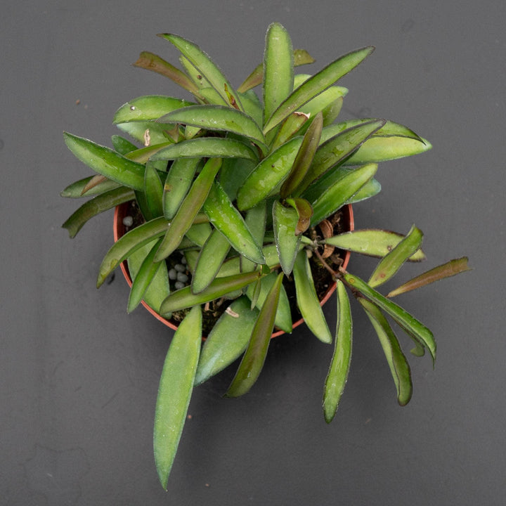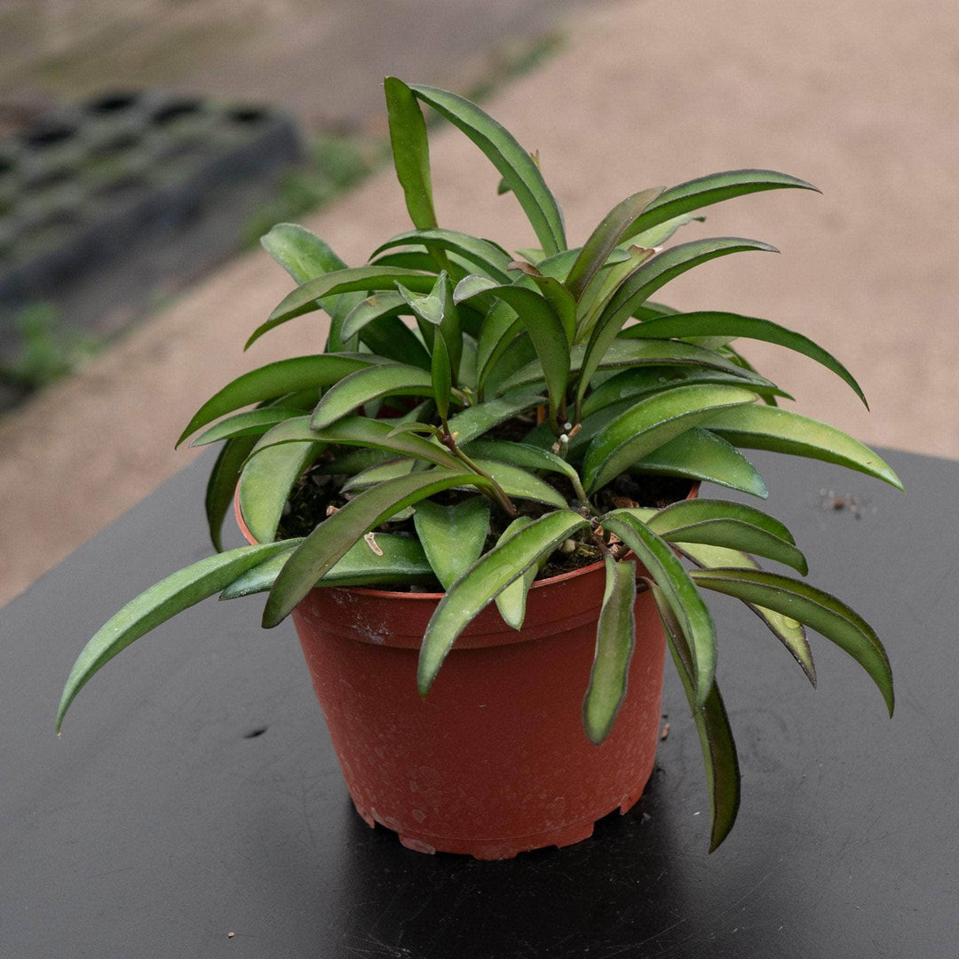 Hoya ‘Rosita' is a hybrid of Hoya wayetii and Hoya tsangii, that has beautiful green oval leaves that develop a maroon border and can turn entirely bronze red if exposed to some early morning or late afternoon sun. All day direct sun will burn the leaves. Blooms readily once mature. Beautiful even when not in bloom!
