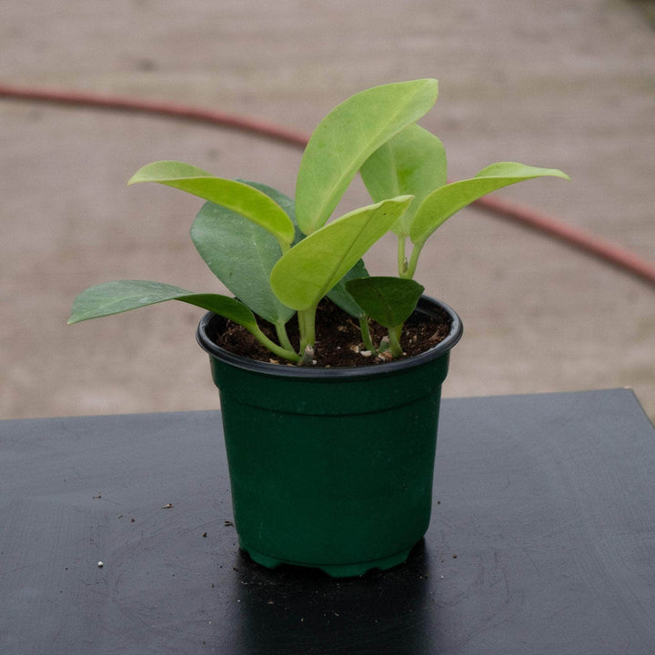 Hoyas are mostly epiphytic creeping, twining or vining plants that have a vast array of different leaf shapes, sizes, textures & colors! If provided with the desired conditions Hoyas can bloom, their flowers varying widely species-to-species with many different colors, sizes & even scents! Many Hoya develop purple spots, streaks or patches on the leaves as a response to light exposure. This is commonly referred to as sun stress, it is completely natural and normal - sometimes the entire leaf can turn various shades of purple/red. This is not disease and is actually a sign that the plant is healthy. Hoya sun stress is generally reversible, the pink, red, or purple swaths/freckles/spots on leaves from bright light is different from sunburn, which causes permanent crispy, white/brown patches. With less light, sun stressed leaves often revert to green, but damaged, burnt spots will not heal - however, the plant can grow new, healthy foliage if conditions are improved gradually.
