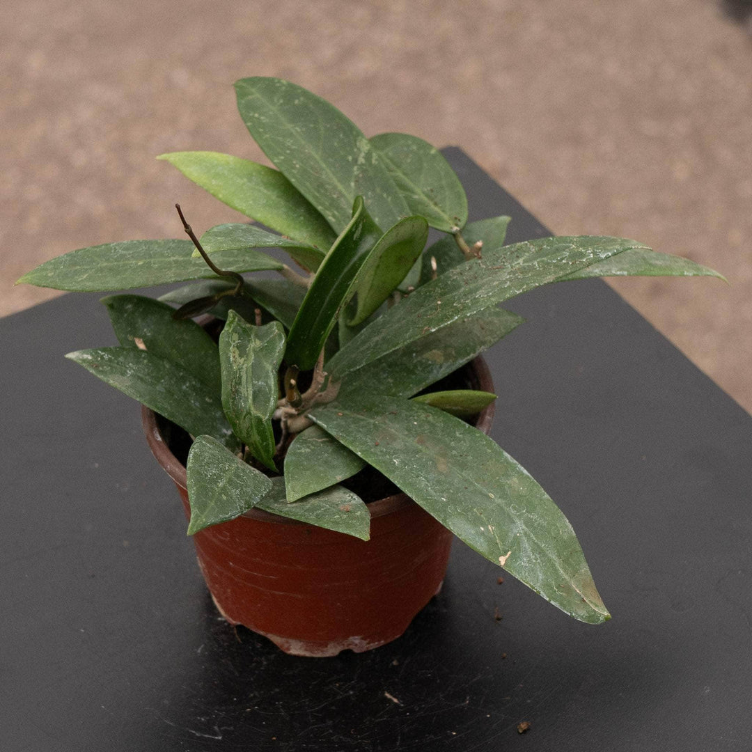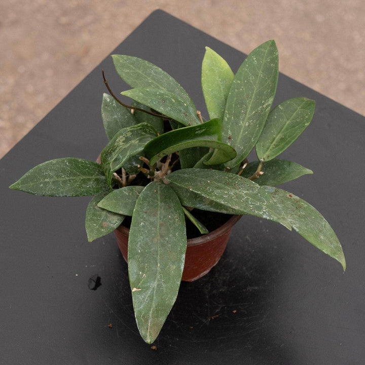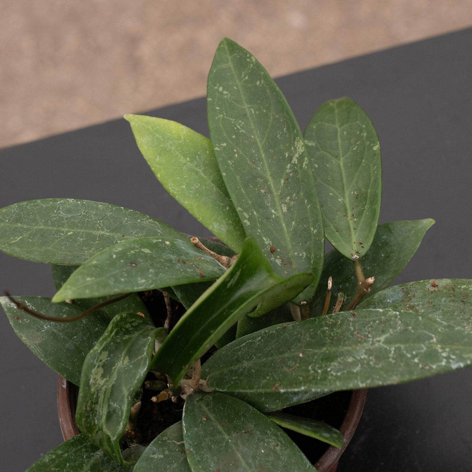 Hoyas are mostly epiphytic creeping, twining or vining plants that have a vast array of different leaf shapes, sizes, textures & colors! If provided with the desired conditions Hoyas can bloom, their flowers varying widely species-to-species with many different colors, sizes & even scents! Many Hoya develop purple spots, streaks or patches on the leaves as a response to light exposure. This is commonly referred to as sun stress, it is completely natural and normal - sometimes the entire leaf can turn various shades of purple/red. This is not disease and is actually a sign that the plant is healthy. Hoya sun stress is generally reversible, the pink, red, or purple swaths/freckles/spots on leaves from bright light is different from sunburn, which causes permanent crispy, white/brown patches. With less light, sun stressed leaves often revert to green, but damaged, burnt spots will not heal - however, the plant can grow new, healthy foliage if conditions are improved gradually.
