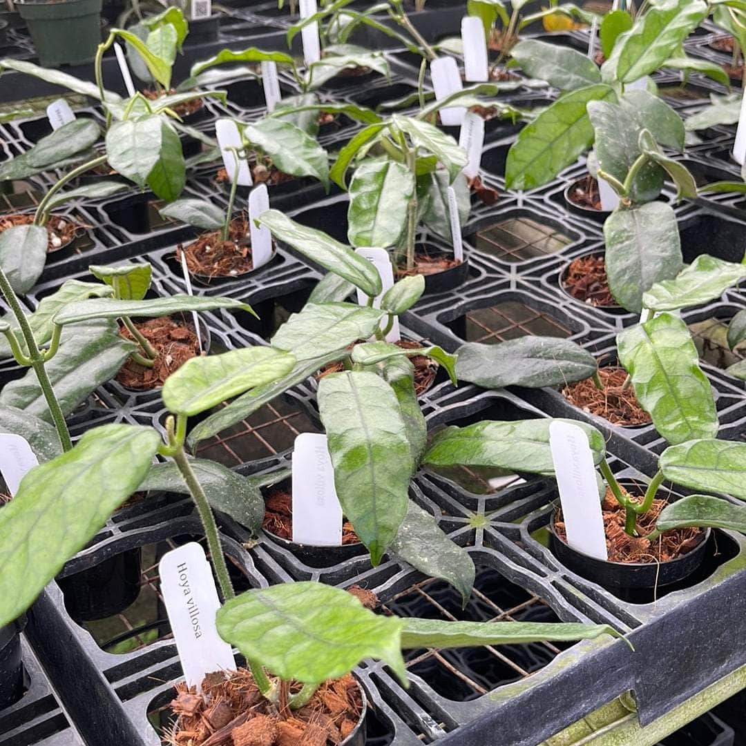 We’re aware of the ongoing confusion between Hoya villosa and Hoya globulosa. While we believe this identification is accurate, we know villosa is now synonymous with globulosa yet there are several different forms - but we have not grown these plants to maturity ourselves to confidently say which exact form this is. Compared to our other listing labeled Hoya globulosa/villosa, this form has different foliage - glossy leaf surface, and shorter and wider blades.