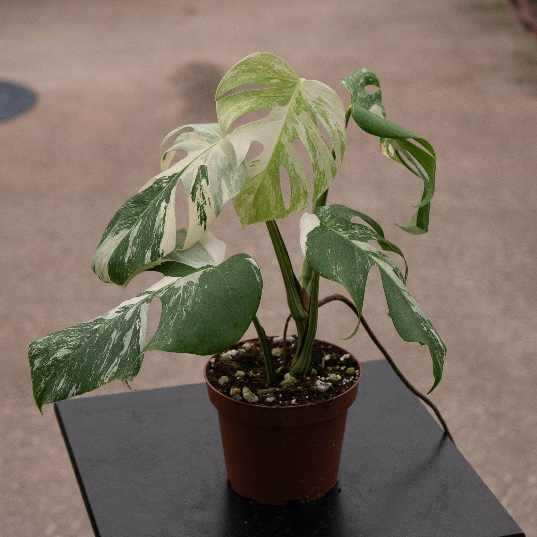 These Monstera Albos were the first collector plant Shane (our owner) ever purchased to start his rare plant collection, which was purchased as a single node cutting in 2019. After what he feared was a slow death of the cutting over the following winter, it eventually blossomed and was even featured in a 24 hour live stream event on Twitch in 2020 when it was developing a variegated inflorescence. Shane began chopping a few select offspring in late 2021 and began slowly building up a few parent plants and now has just a handful he's ready to share.