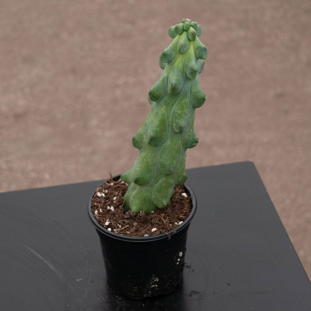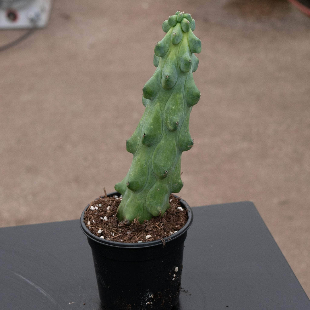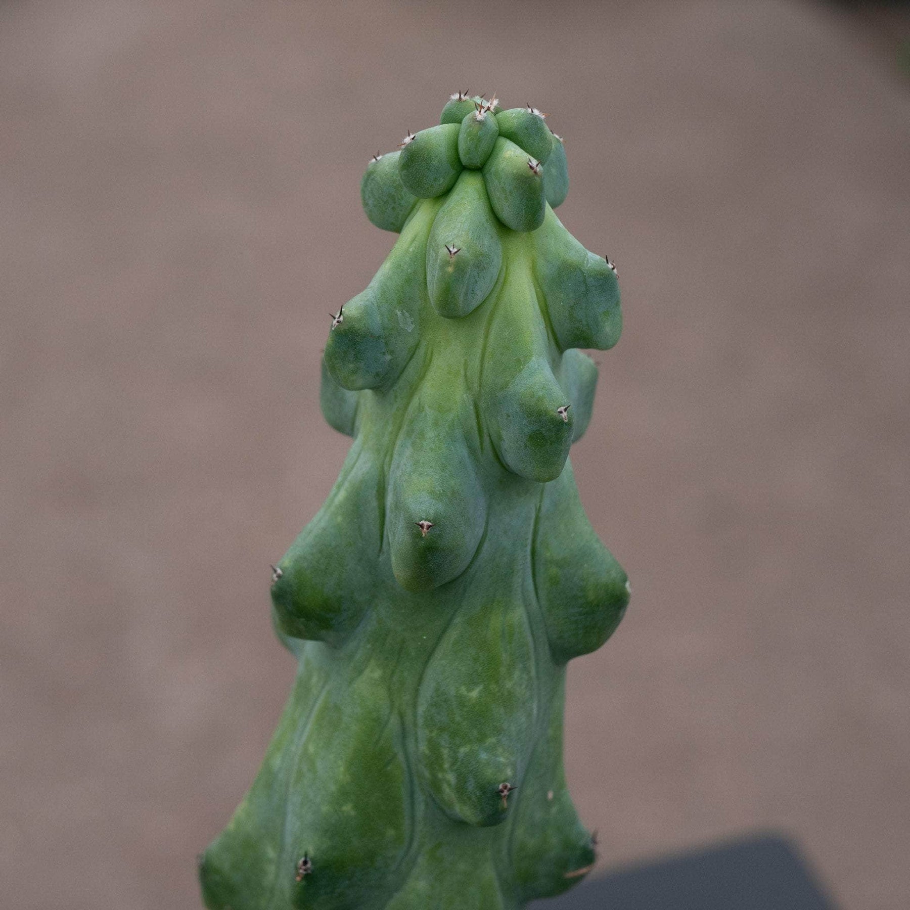 Myrtillocactus geometrizans 'Fukurokuryuzinboku', commonly referred to as "Boobie Cactus". Thrives in direct sun to very bright indirect light, wait for soil to dry before watering. Needs really good drainage.