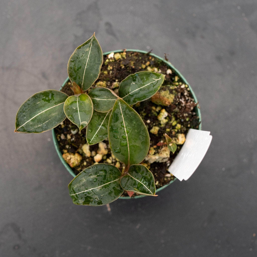 The new cultivar of the standard Ludisia discolor Jewel Orchid showcases dark, chocolatey leaves with a single mid-vein of silver. Very striking collector's plant!