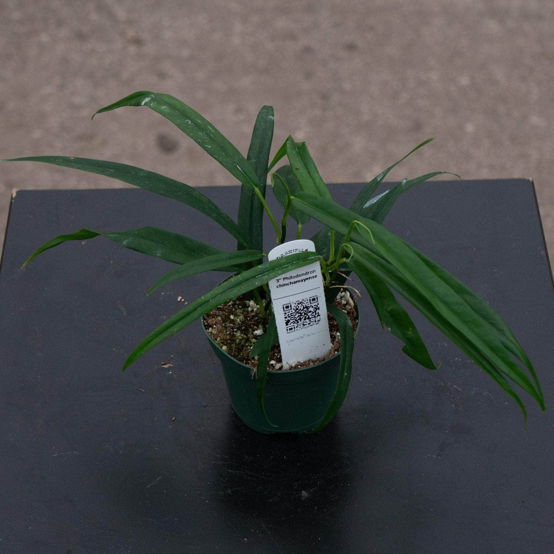 Philodendron chinchamayense is elegant and dainty, with its long, narrow leaves that reach an average 5" long. Looks best when given something to climb on like a background or mounted on driftwood. Needs moderate to high humidity, thrives in terrariums and vivariums without taking over.