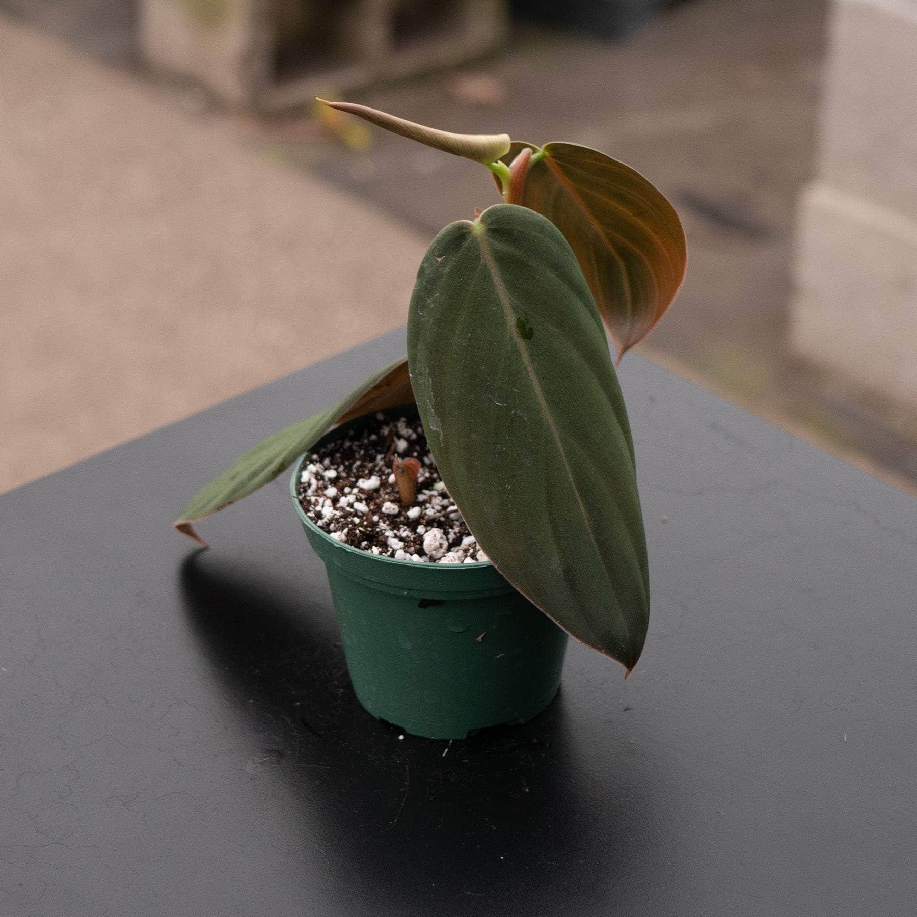 Beautiful, large and velvety climber! Philodendron gigas is a hemiepiphyte, it can grow either from the ground up the side of a tree or send roots from a tree branch down to the ground. Velvet leaves are olive green to dark green and each leaf matures to 3'-4' long!