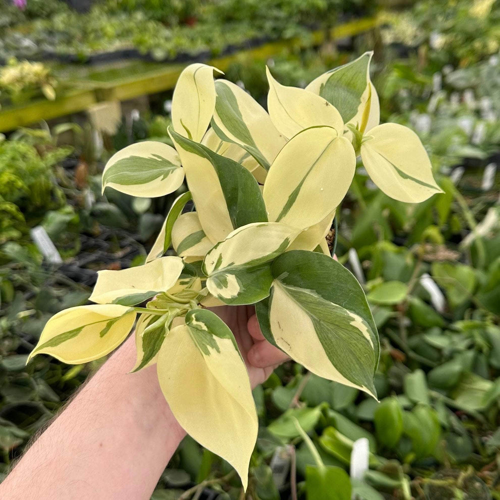 Philodendron Rio has been a Gabriella Plants Original cultivar for over a decade, and now we're getting ready to introduce a sub-cultivar, a mutant Rio which has been occurring in our greenhouses for almost as long! This mutant Rio grows much closer to our other original cultivar Philodendron Gabby and has smaller rounded leaves and much more cream than green!