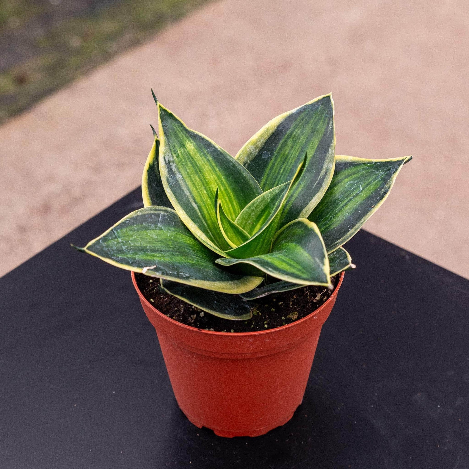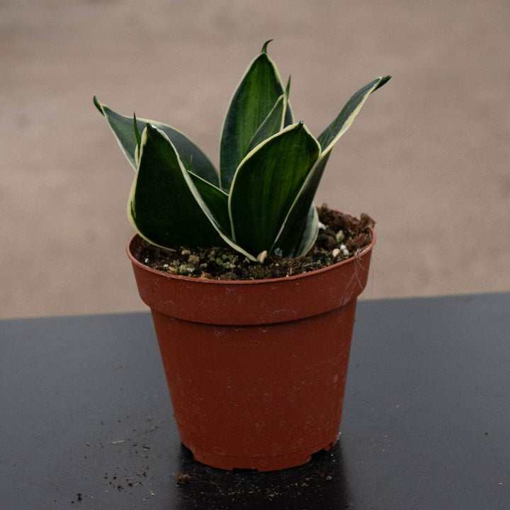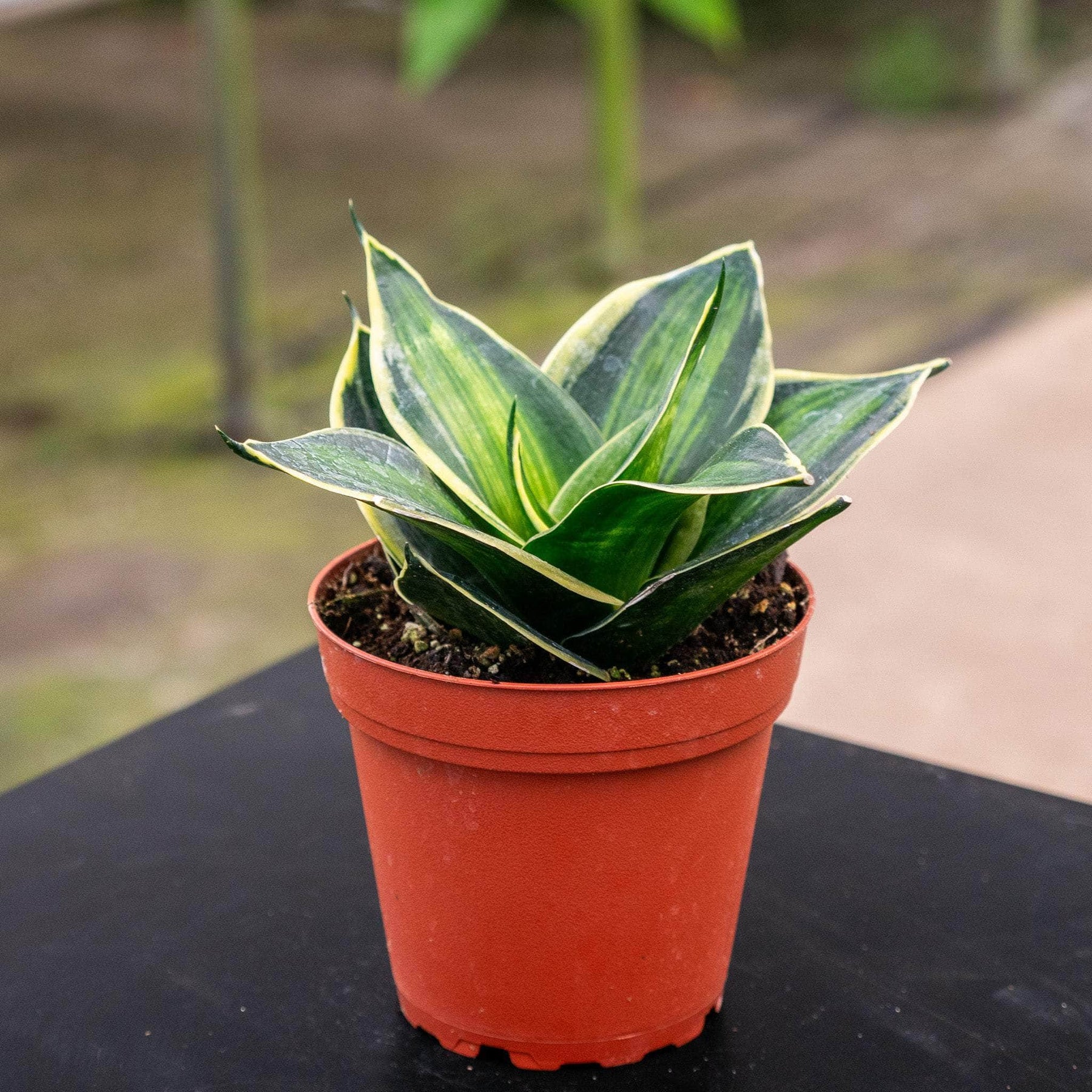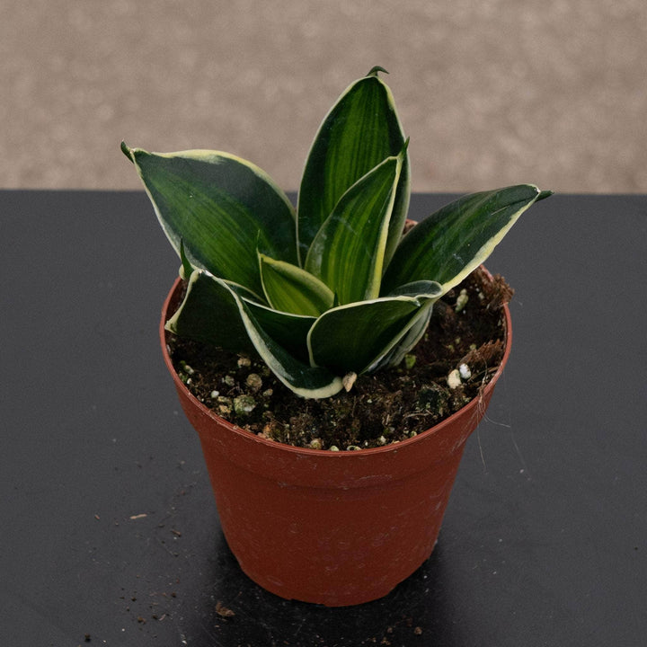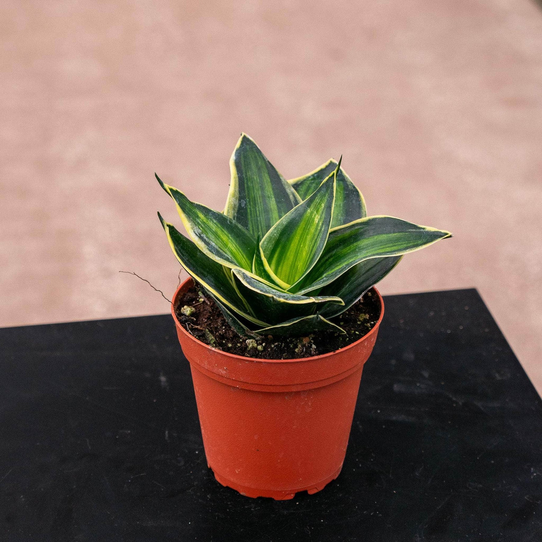 Sansevieria are known for being a GREAT house plant. Commonly referred to as Snake Plant. They do well with light watering. Within the average house environment, Sansevieria only need to be watered every other week or so. Be sure the soil is almost entirely dry before fully watering the plant again. They don't mind stagnant air, which lends to their ease in home environments. They do well in a moderately wide range of lighting conditions but they enjoy moderate lighting the most.