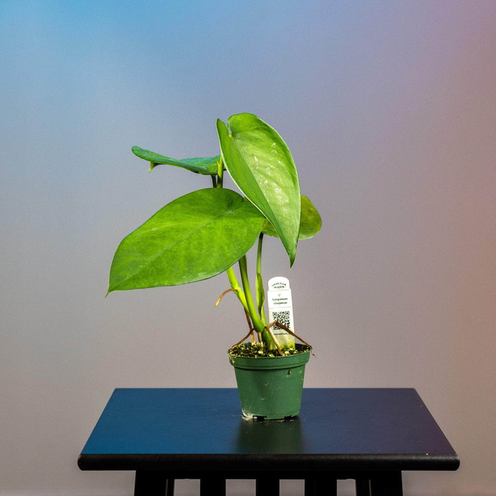 Syngonium chiapense loves to climb and its velvety green leaves grow up to 2' long. Water when the top 2"or more are dry to the touch. Grows fast when provided bright indirect light, will tolerate low light but growth will be much slower. Feed monthly during the growing season with liquid fertilizer diluted half to quarter strength.