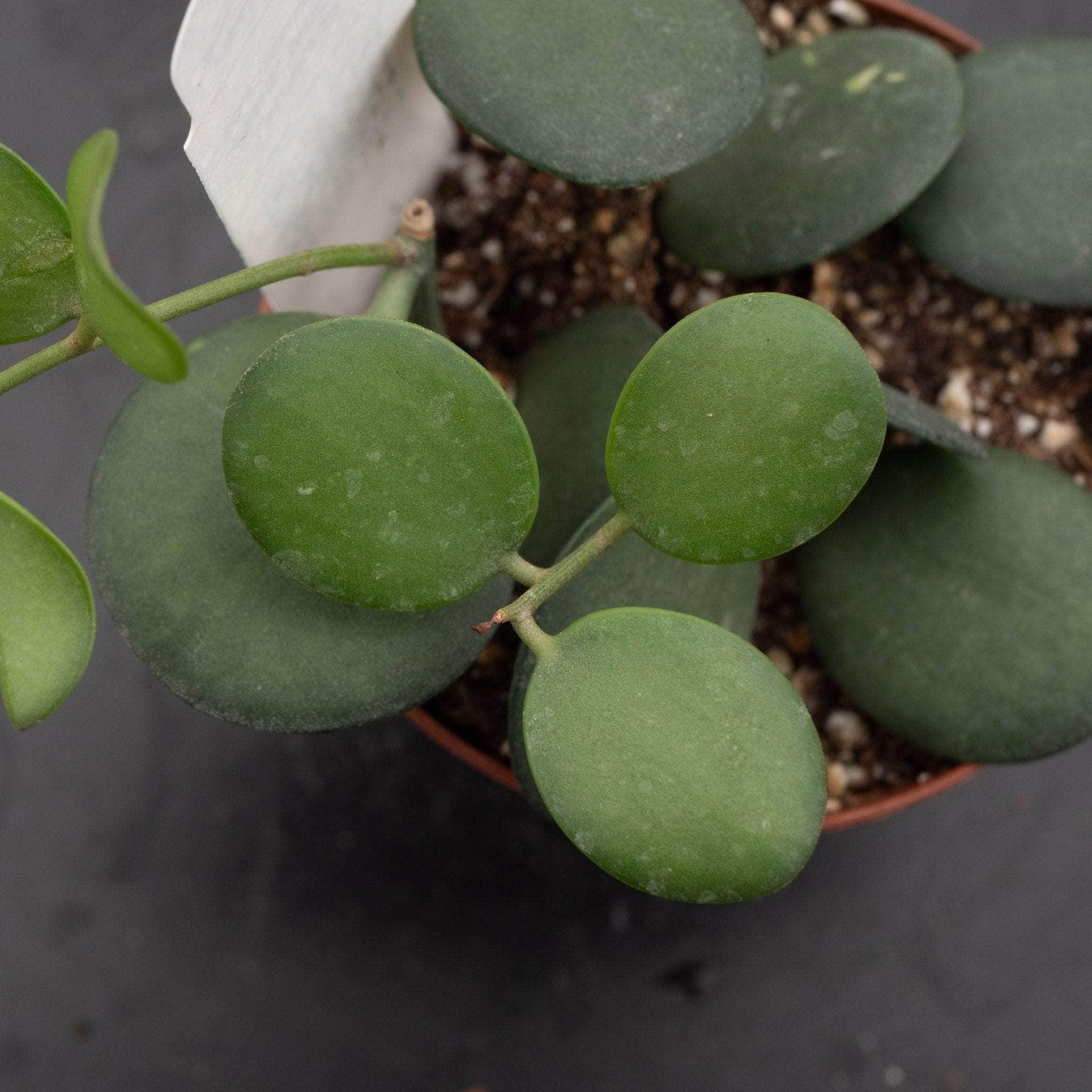 From the sub-arid bushland forest and dunes of Madagascar, Xerosicyos danguyi 'String of Coins' has a vining growth habit. Its thick cylindrical stems develop delicate curly tendrils that seek support to climb. Thick, succulent leaves which emerge bright green later develop a silver hue, and are shaped like ancient coins, hence the name. Small chartreuse dioecious flowers (male and female on different plants) can appear in late winter to early spring.